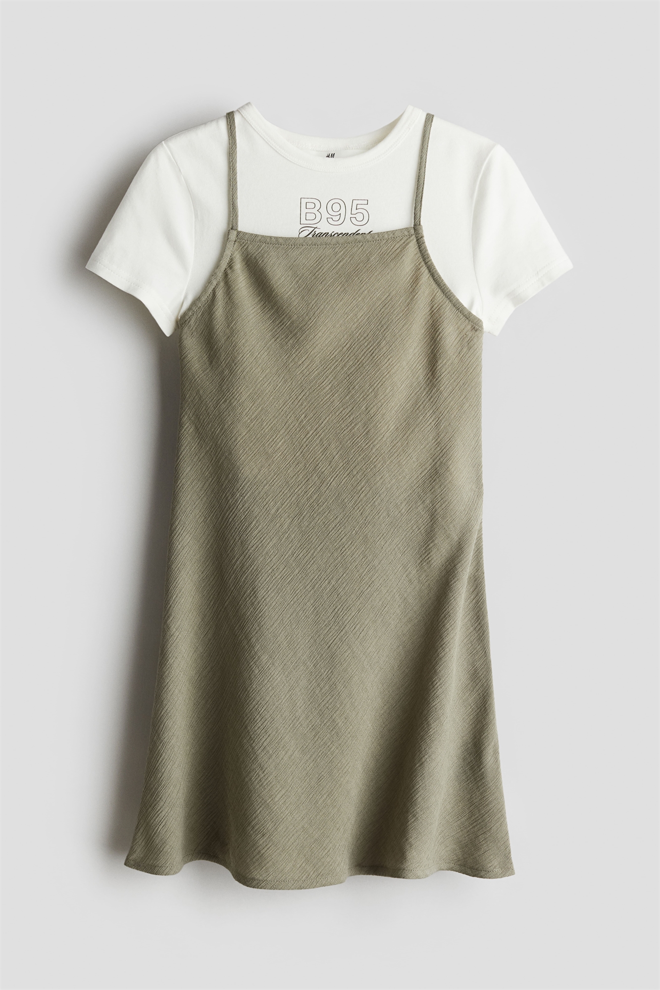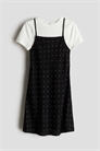 Согласованный комплект из топа и платья. Топ из хлопкового джерси с круглым вырезом и короткими рукавами. Платье из воздушного плетения с узкими регулируемыми бретелями. Без подкладки.