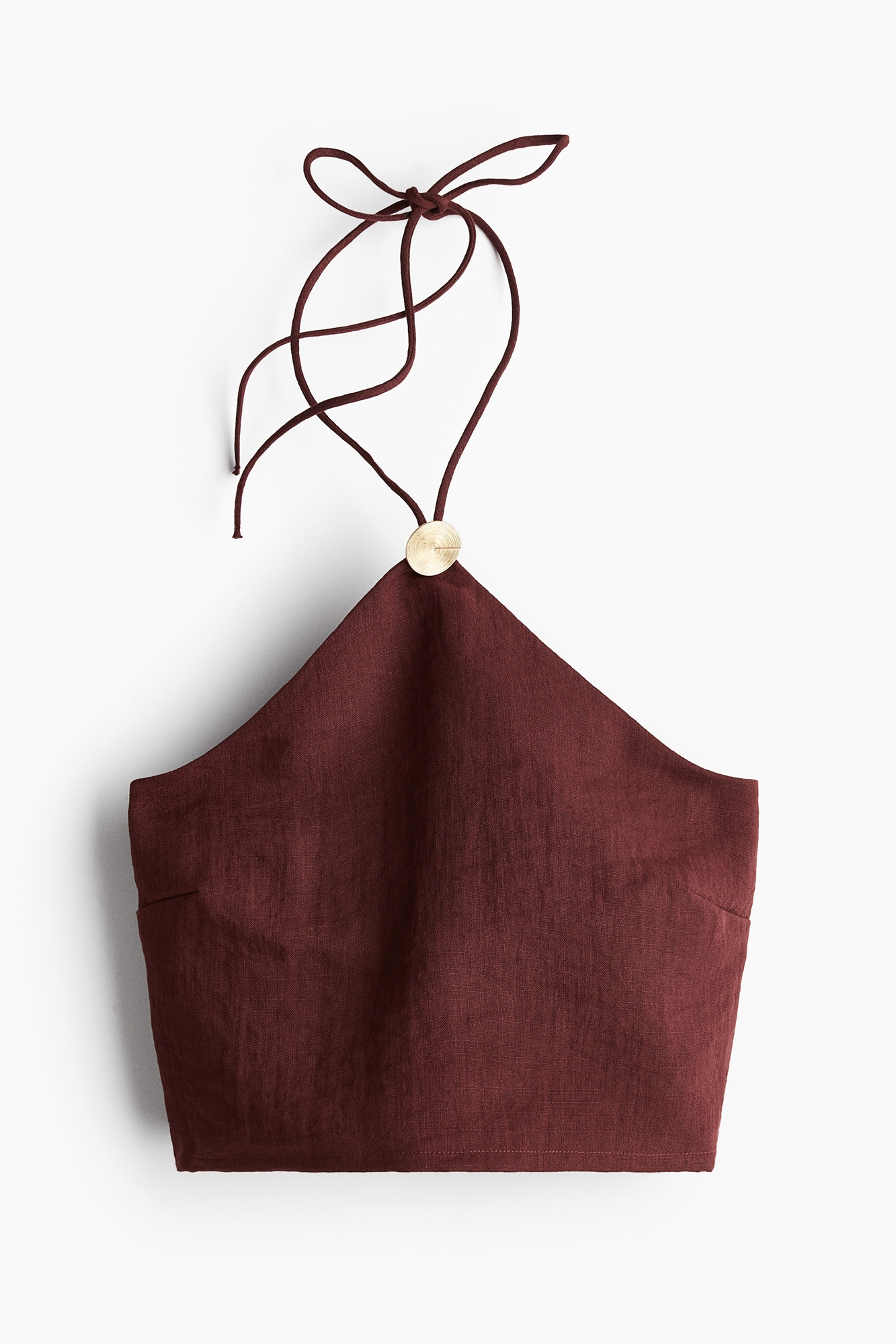 Облегающий топ из тканого материала с узким вырезом в верхней части с круглой металлической деталью и завязками на бретелях. Завязки сзади. На подкладке.