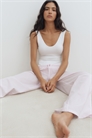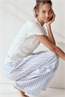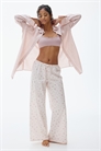 Свободные пижамные штанишки из хлопкового полотна с заниженной талией, эластичным поясом и узким шнурком. Прямые, слегка расклешенные ноги.