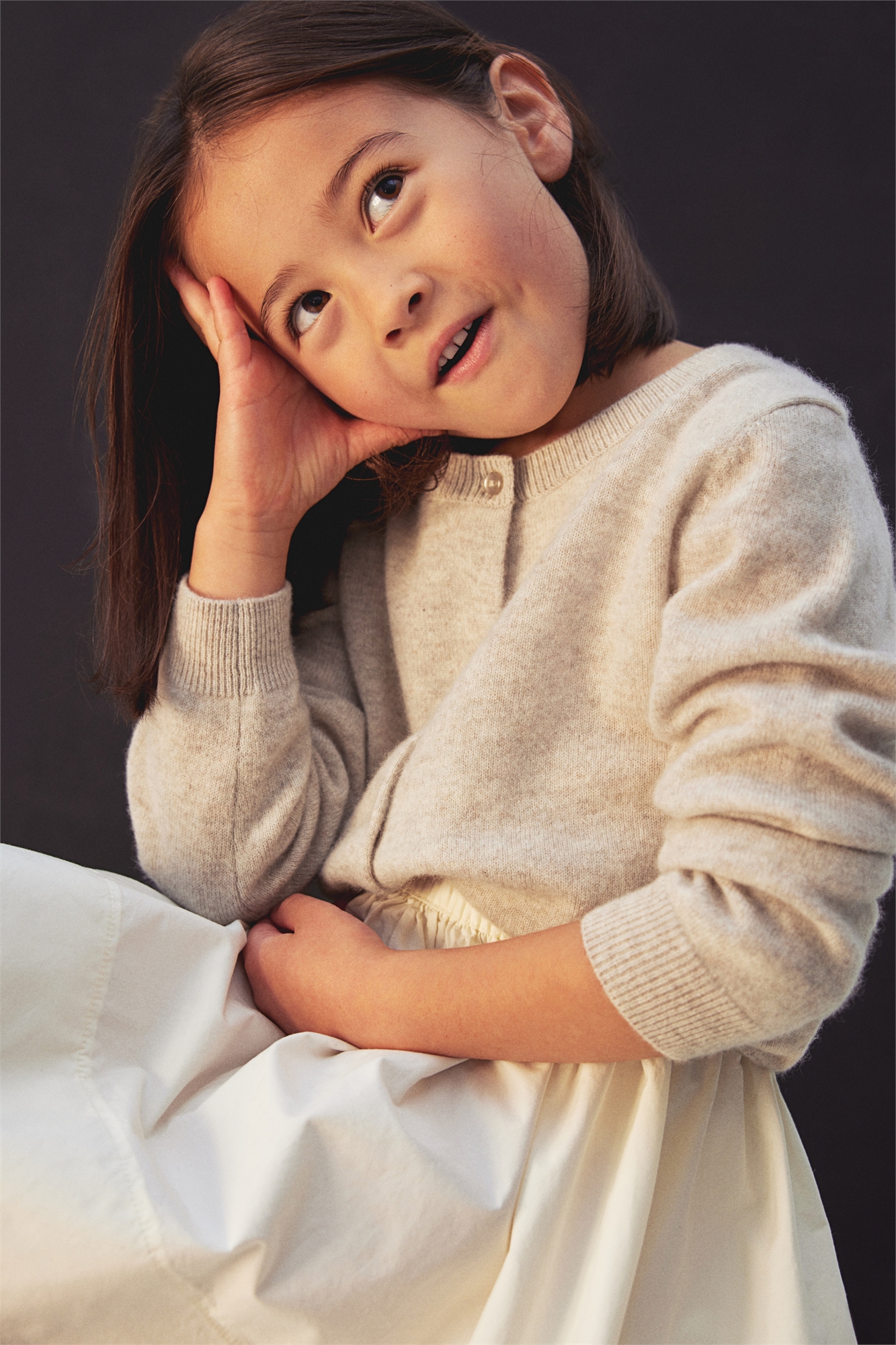 H&M Adorables. Кардиган тонкой вязки из шелковисто-мягкого кашемира. Круглый вырез с ребристой отделкой, пуговицы спереди, манжеты и подол с ребристой отделкой. Кашемир естественным образом регулирует температуру и обеспечивает долговечную одежду с бесконечным комфортом, которую можно носить в течение многих лет. Коллекция H&M Adorables - это подборка качественных вещей повышенной комфортности, которые не подвластны времени.