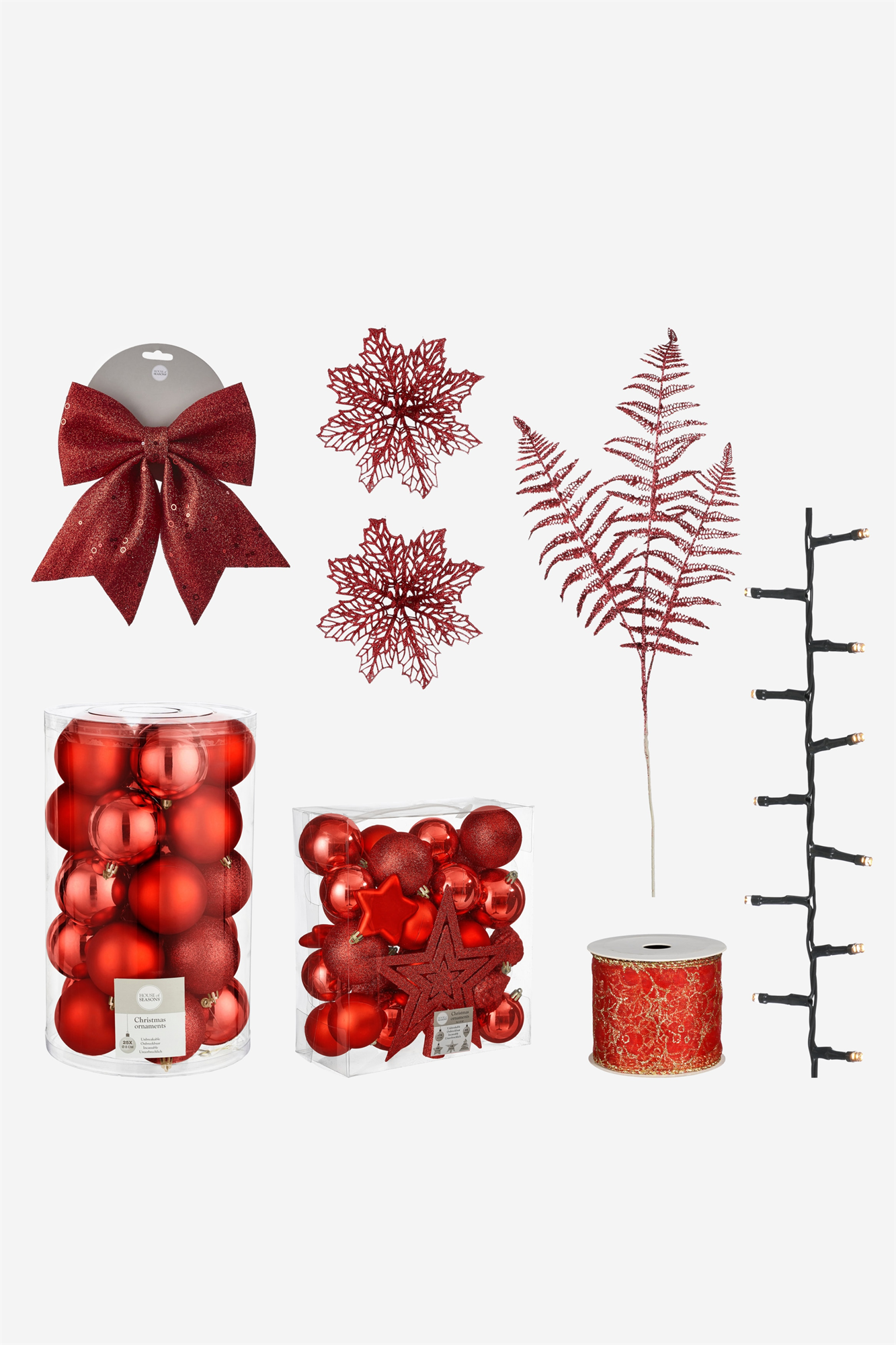 Этот роскошный набор украшений из коллекции House of Seasons. Набор состоит не менее чем из 100 золотых предметов, которые подойдут для украшения вашей елки. С этим обширным набором у вас будет достаточно украшений, чтобы сделать вашу елку по-настоящему сияющей в праздничный сезон! В набор входят, помимо прочего, 65 золотых пластиковых елочных игрушек, включая шип. Также есть 6 декоративных веток в форме папоротника, 16 золотых пуансеттий с зажимами, 8 золотых бантов, 4 золотые ленты размером L270 x W6 см и, наконец, 1 рождественская цепочка в виде змеи с 550 теплыми белыми светодиодными лампочками длиной 1100 см. Елочные украшения, чтобы полностью украсить елку высотой от 1,85 до 2,15 метра!