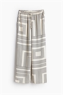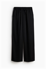 Свободные брюки из мягкой саржи с высокой эластичной талией, боковыми карманами и широкими штанинами.