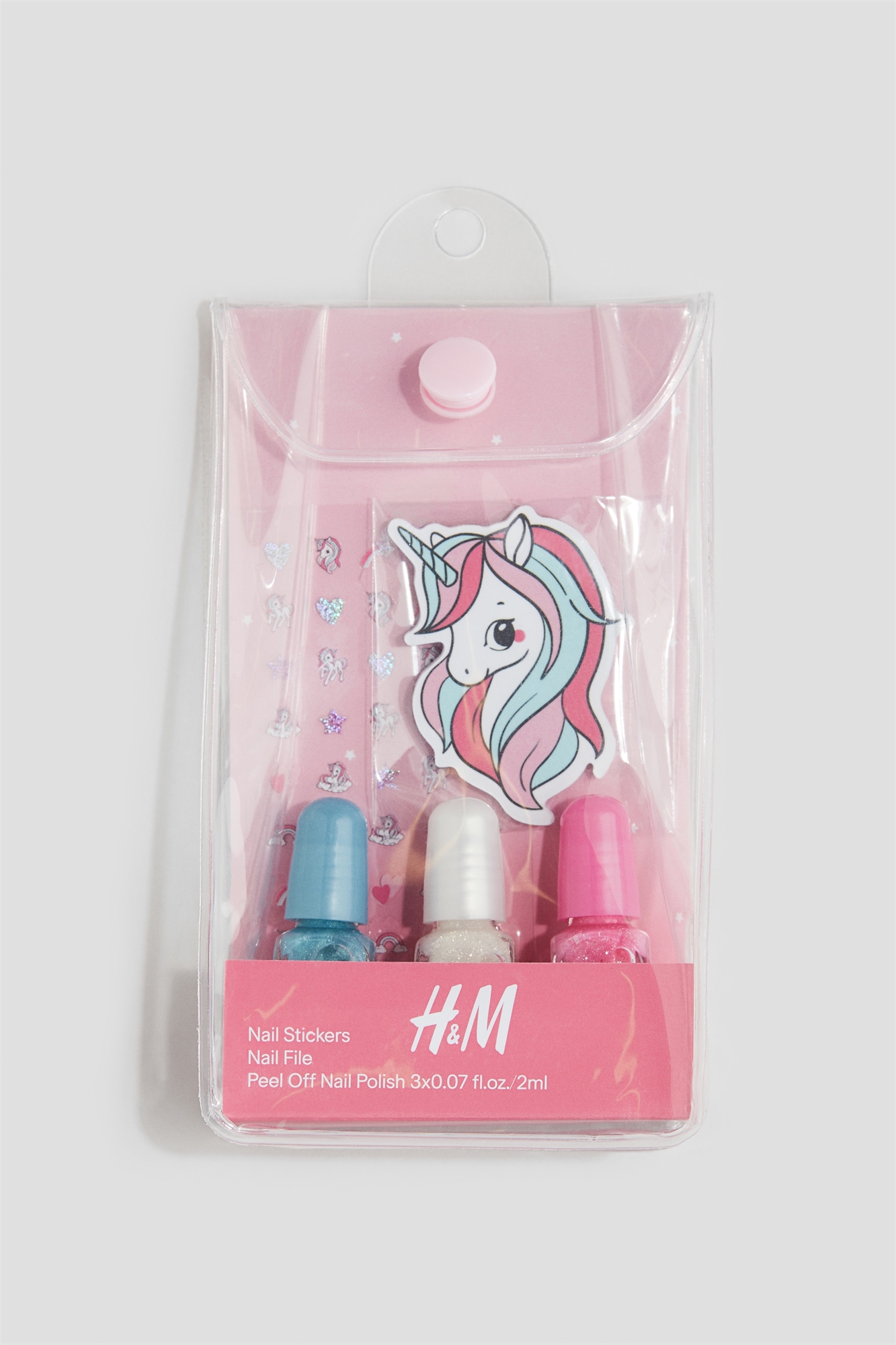 Набор, содержащий отслаивающийся лак для ногтей, пилочку и украшения для ногтей, в прозрачном пакете с застежкой-фиксатором. Три лака для ногтей разных цветов, которые можно смешивать и сочетать. Легко снимается - не требует жидкости для снятия лака. 3x2 мл.