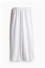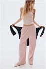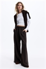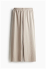 Джоггеры свободного покроя из толстоватой ткани с мягкой начесом внутри. Высокая талия с эластичным швом и потайным шнурком. Небрежные боковые карманы, открытый задний карман и широкие штанины.