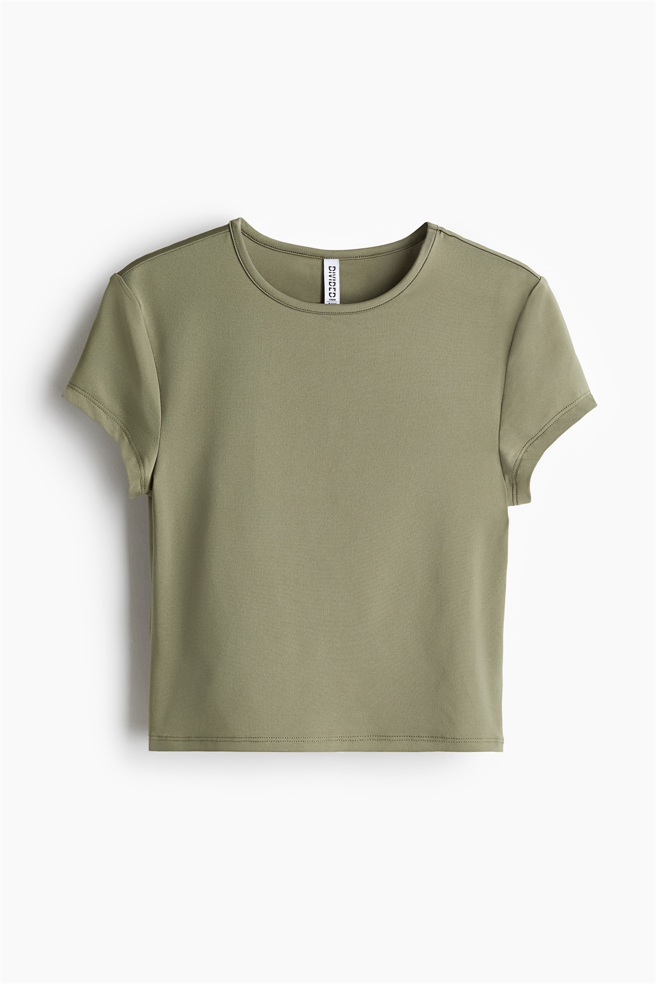 Короткая, облегающая фигуру футболка из эластичного джерси. Круглый вырез с узкой окантовкой и прямой подол.