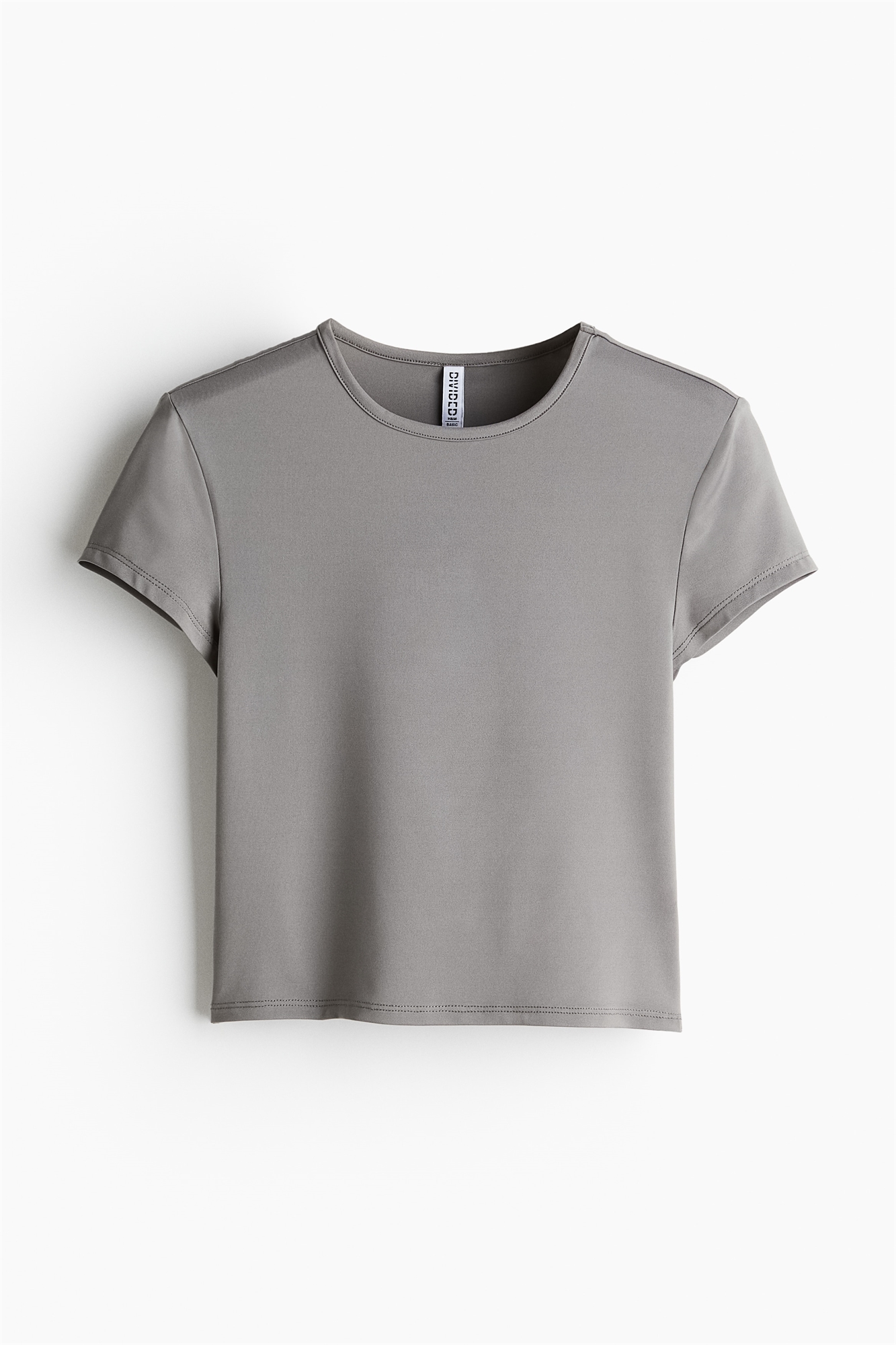 Короткая, облегающая фигуру футболка из эластичного джерси. Круглый вырез с узкой окантовкой и прямой подол.