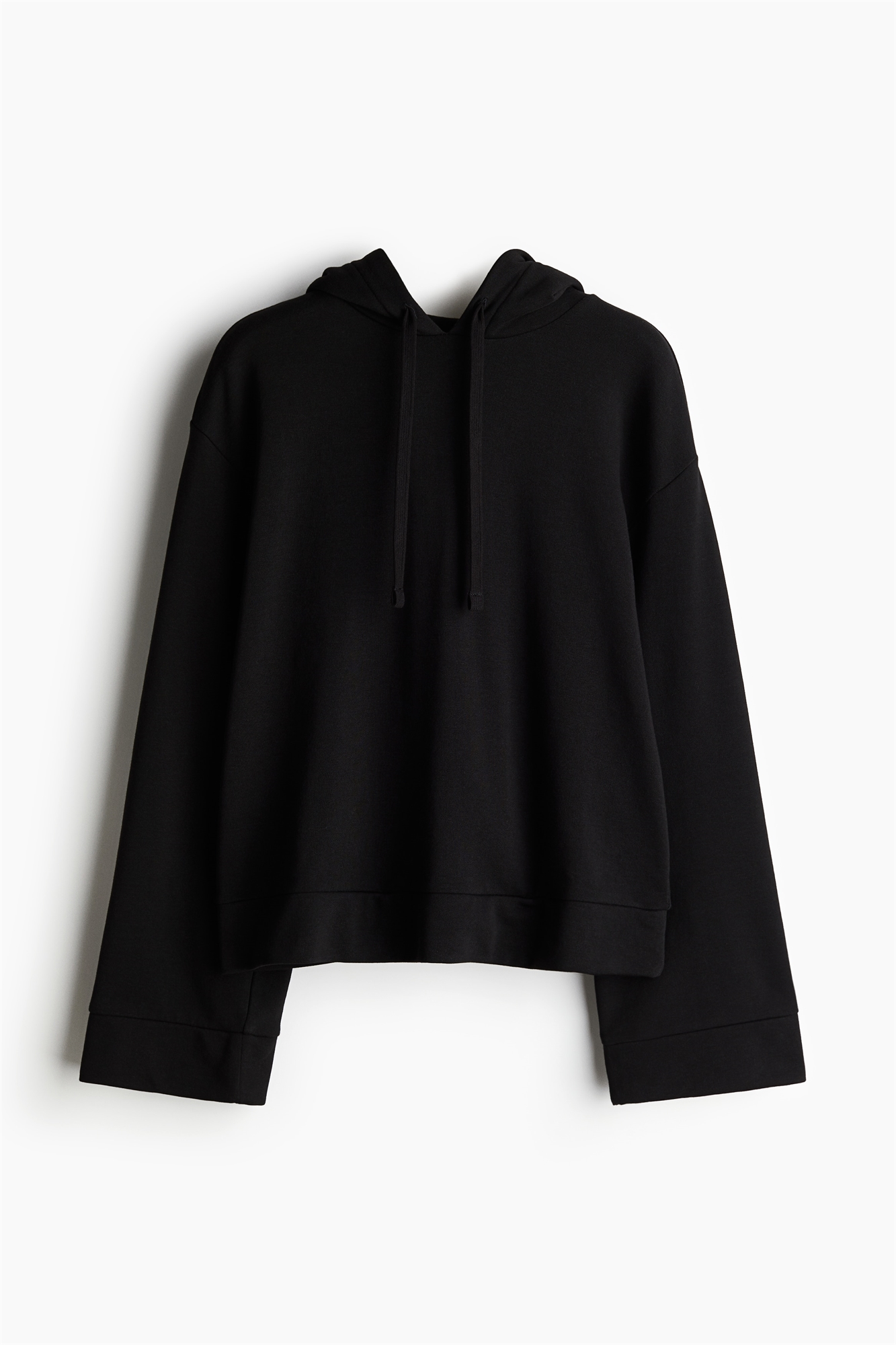 Толстовка из мягкого трикотажа с капюшоном на завязках, спущенными плечами и длинными широкими рукавами.