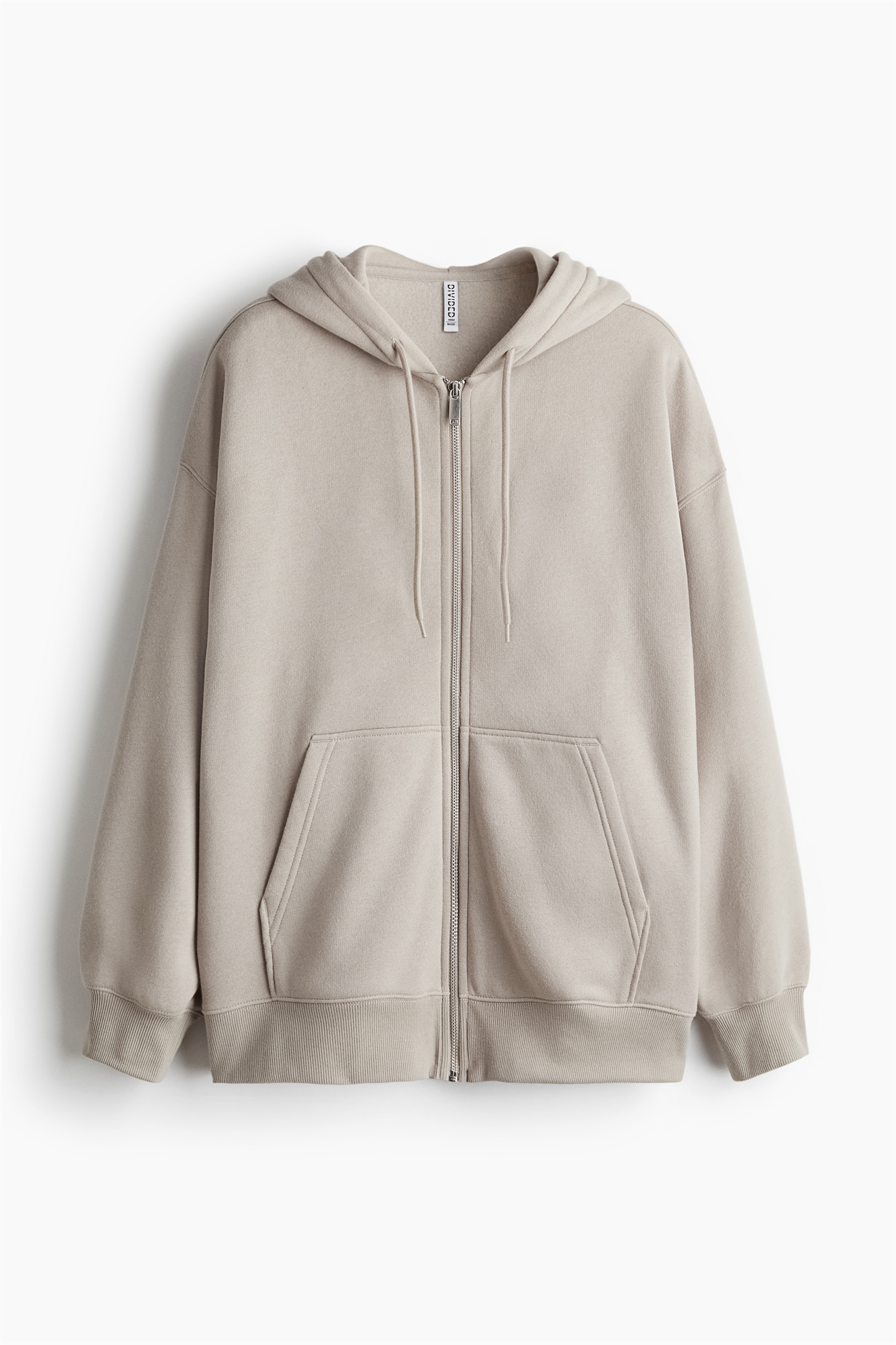 Толстовка на молнии оверсайз из футера с мягким начесом внутри. Двухслойный капюшон, застежка-молния спереди, спущенные плечи и длинные рукава. Карманы-кенгуру, манжеты и подол в рубчик.