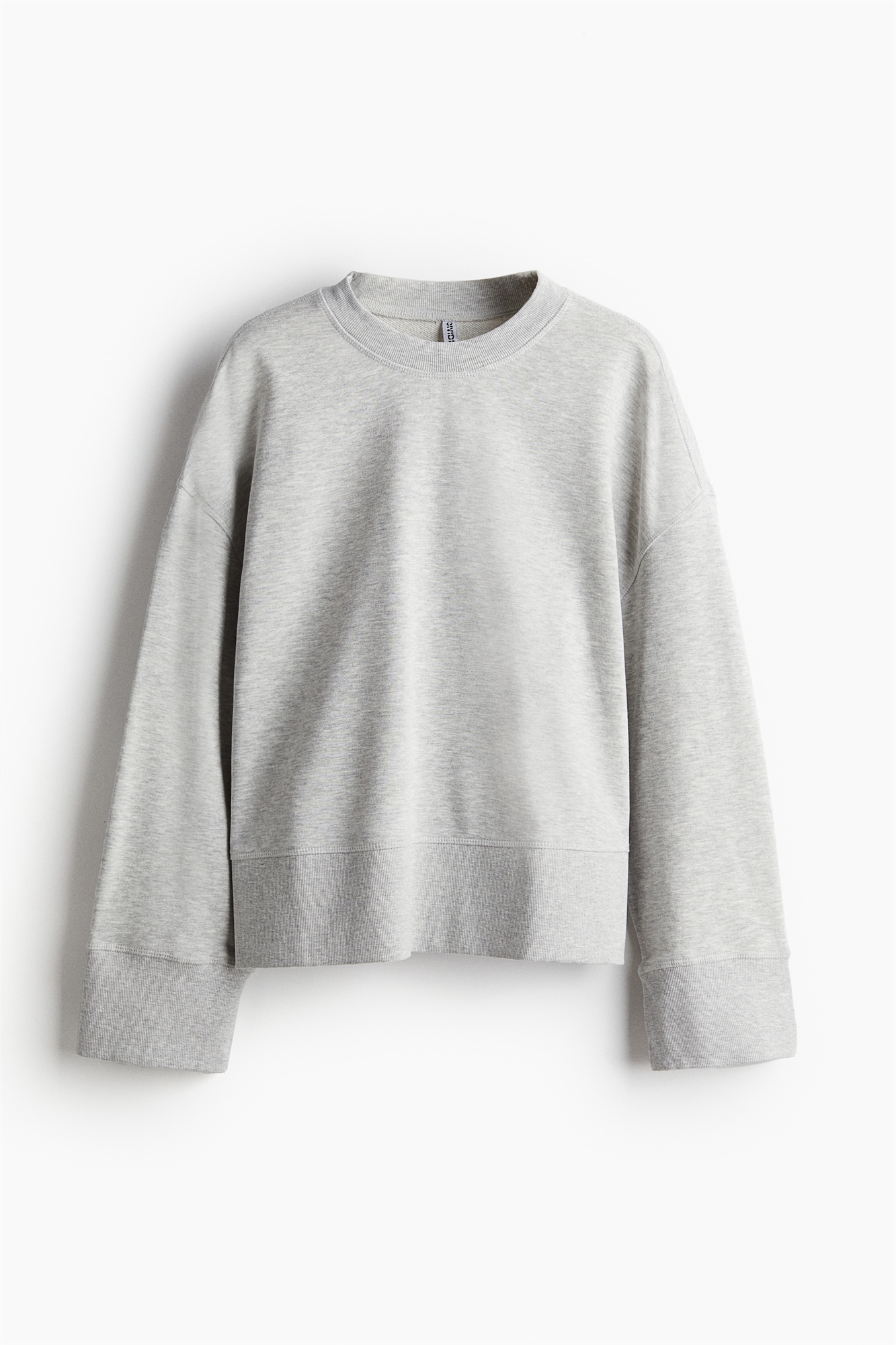 Топ оверсайз из футера с швами flatlock для дополнительного комфорта. Круглый вырез с ребристой отделкой, спущенные плечи и длинные рукава. Широкая ребристая отделка на манжетах и подоле.