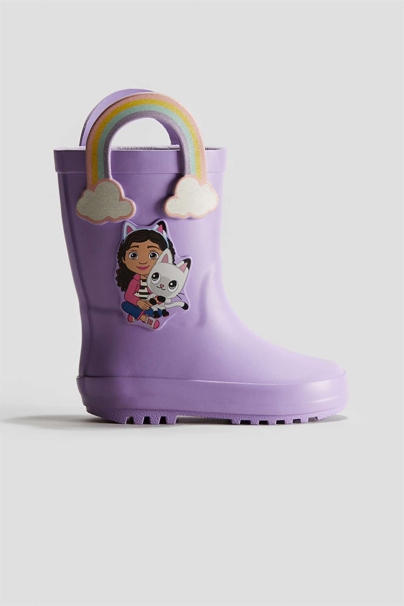 Вельветовые сапоги для непромокаемых игр на улице с ручками в форме радуги в верхней части и тисненым принтом. Подкладка и стелька из микрофлиса, подошва с рисунком для надежного сцепления с поверхностью. Высота подошвы 2,6 см.