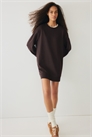 Короткое платье из легкой толстовочной ткани с швами flatlock для дополнительного комфорта. Свободный крой с круглым вырезом в рубчик, спущенными плечами и длинными рукавами. Ребристые манжеты и подол.