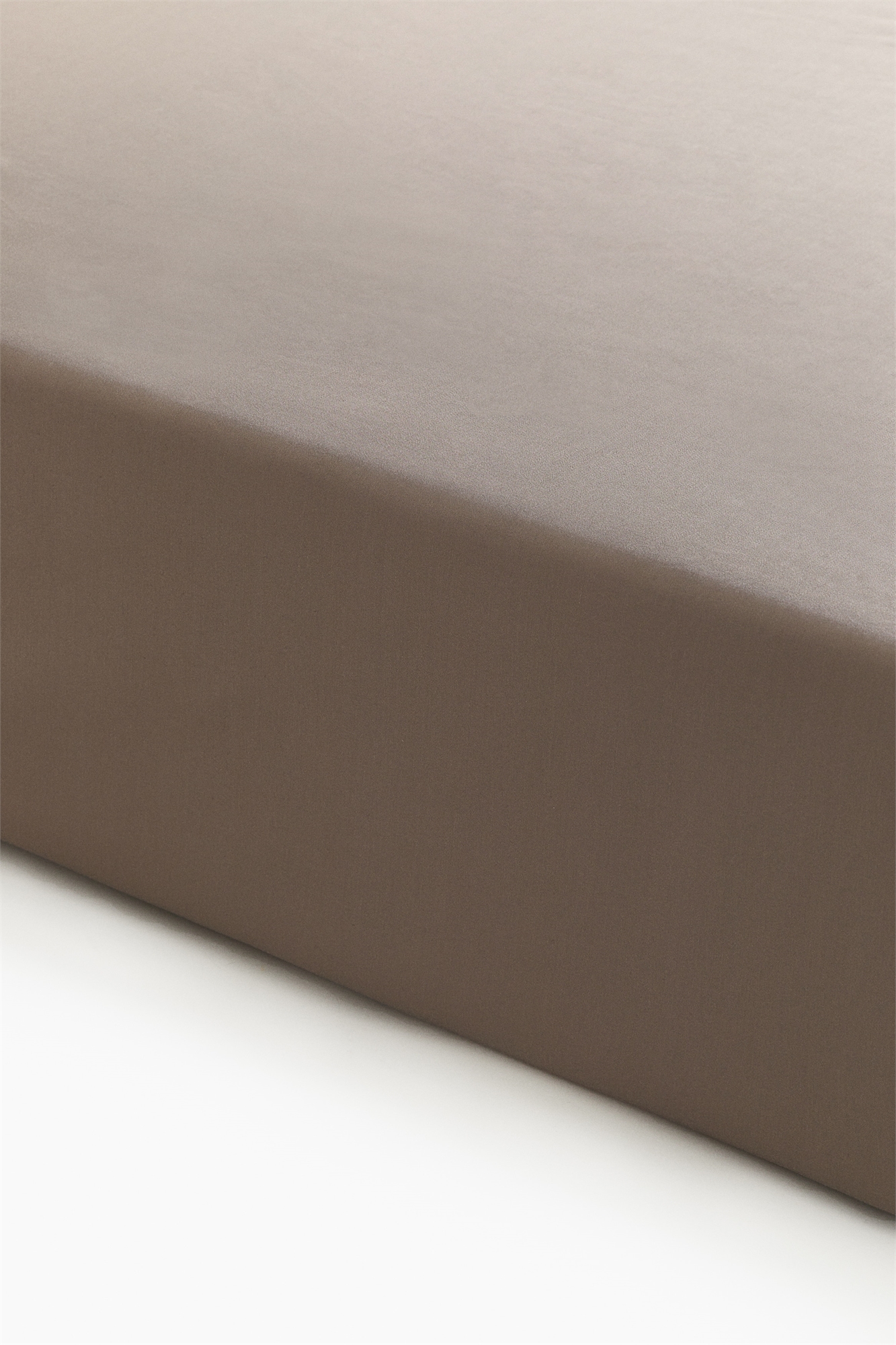 Простыня на резинке из сатина с количеством нитей 300. Подходит для матрасов глубиной до 23 см.