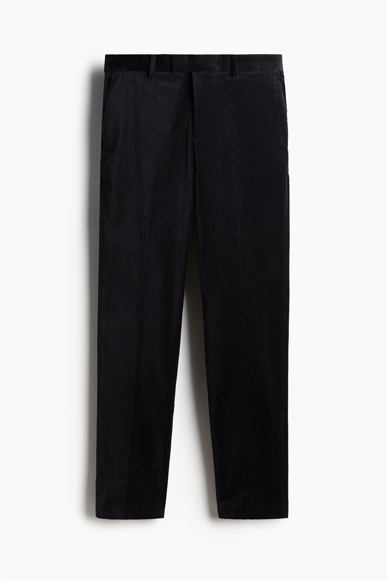 Обрезанные брюки из мягкого бархата с ширинкой на молнии, удлиненным поясом со скрытой застежкой на пуговицу и крючок, боковыми карманами, втачными задними карманами на пуговице и ногами со складками. Зауженный крой, облегающий контуры тела и создающий приталенный силуэт.