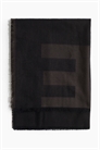 Шарф из мягкого жаккардового переплетения с легкой матовой поверхностью и обтрепанными краями.