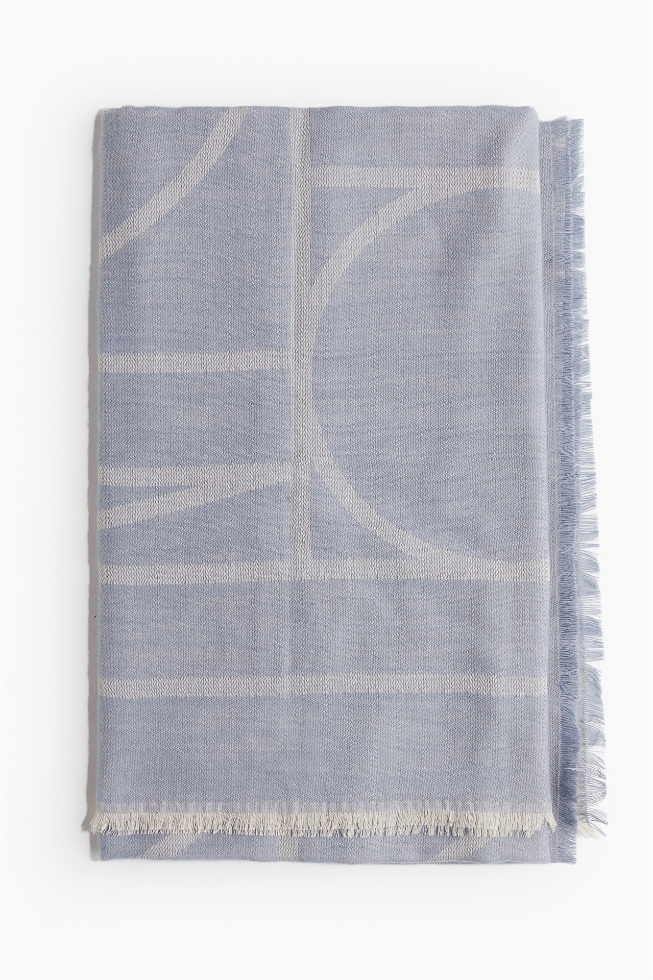 Шарф из мягкого жаккардового переплетения с легкой матовой поверхностью и обтрепанными краями.
