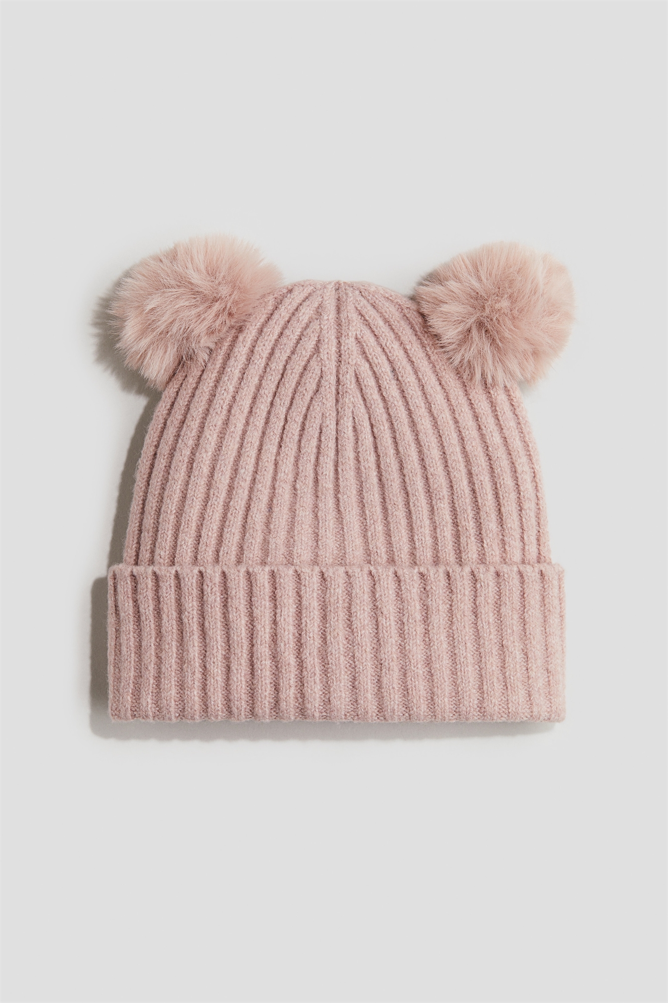 Мягкий трикотаж в рубчик с помпонами на макушке и подворотом на подоле.