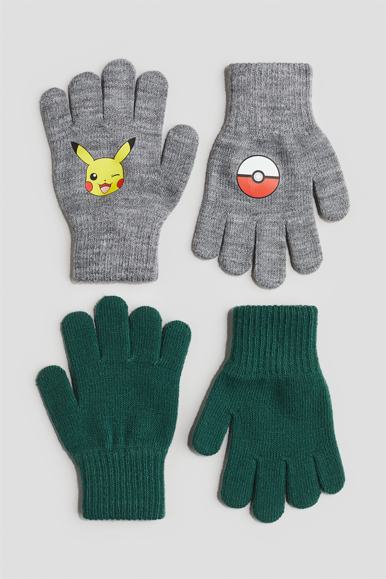 Перчатки из мягкого тонкого трикотажа с ребристыми манжетами. Одна пара украшена принтом на верхней части.