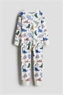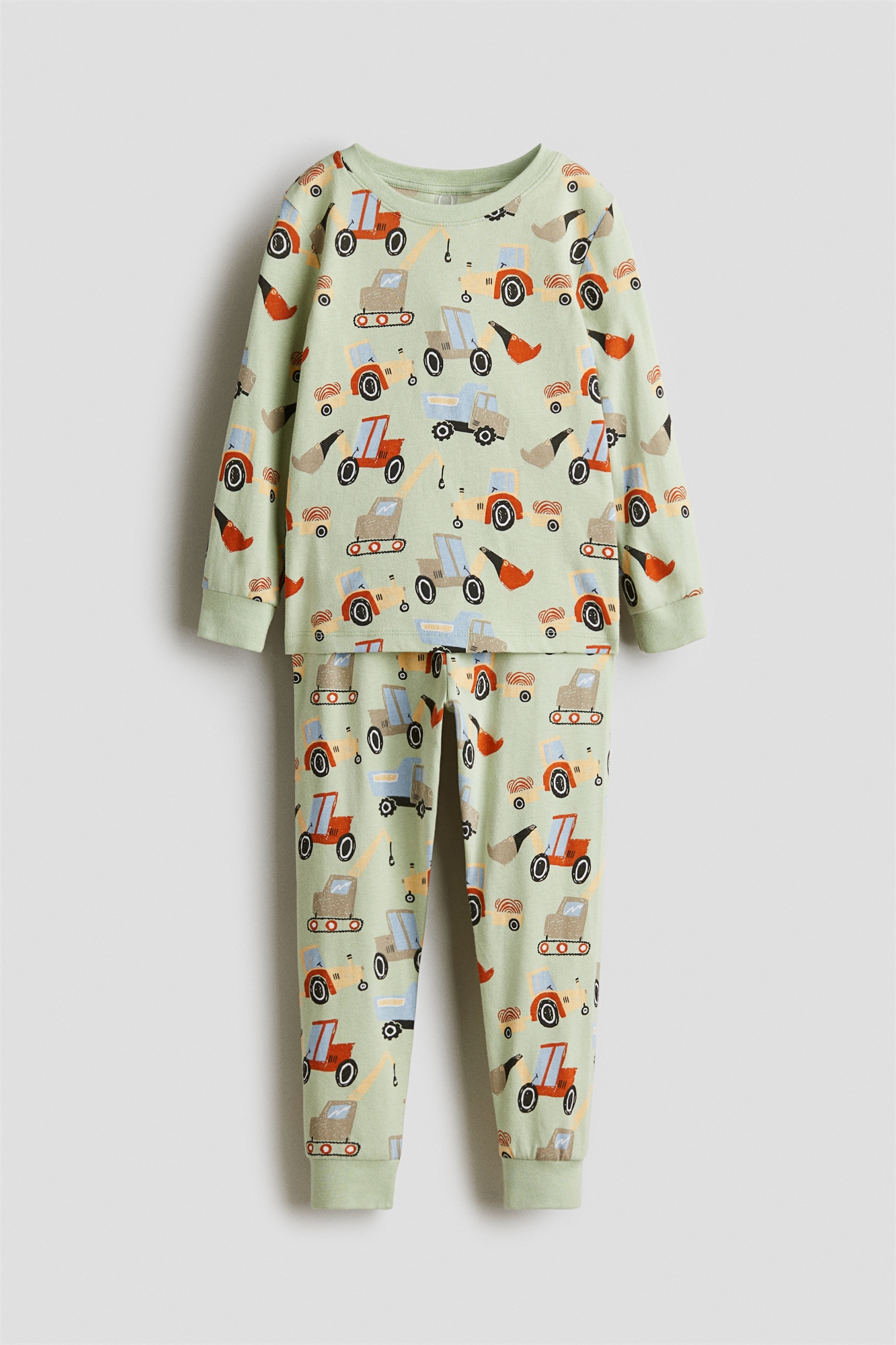 Пижама с верхом и низом из мягкого хлопкового джерси с принтом. Верхняя часть с длинными рукавами, круглым вырезом с ребристой отделкой и манжетами в рубчик. Нижние штанишки с эластичной вставкой на талии и окантовкой по краям.