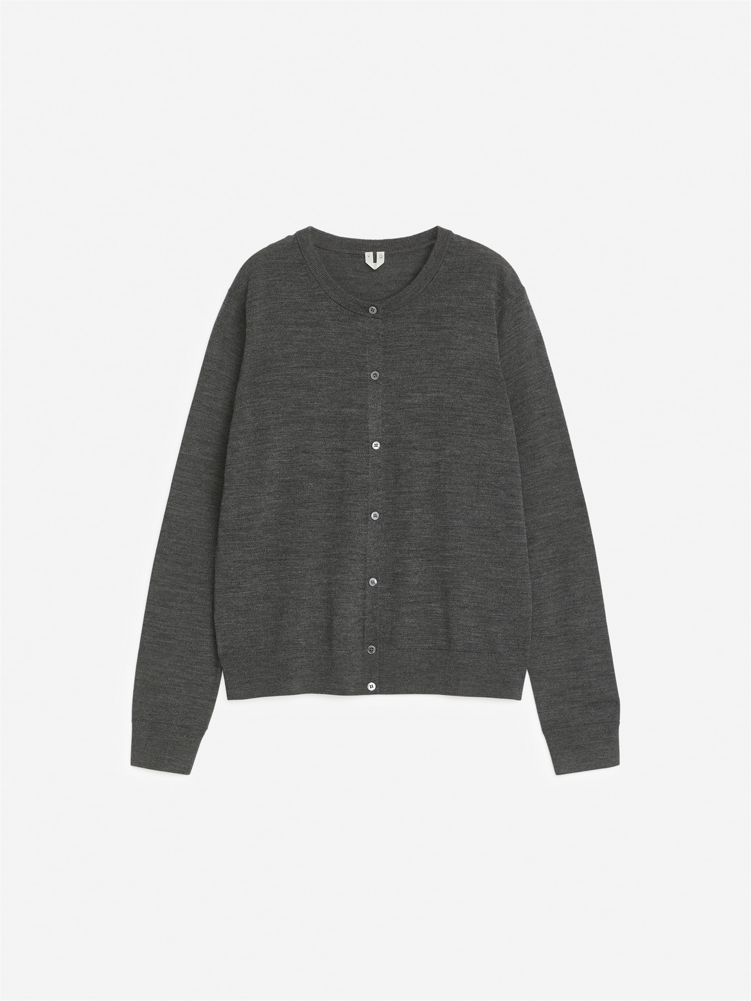 Кардиган вязаный из чистой мериносовой шерсти. С ребристой отделкой и перламутровыми пуговицами. Регулярный крой. Кардиган содержит 100% шерсти RWS (TE-00047206). Продукция, сертифицированная по стандарту Responsible Wool Standard (RWS), содержит шерстяное волокно с ферм, прошедших независимую сертификацию на соответствие требованиям по благополучию животных и землепользованию.