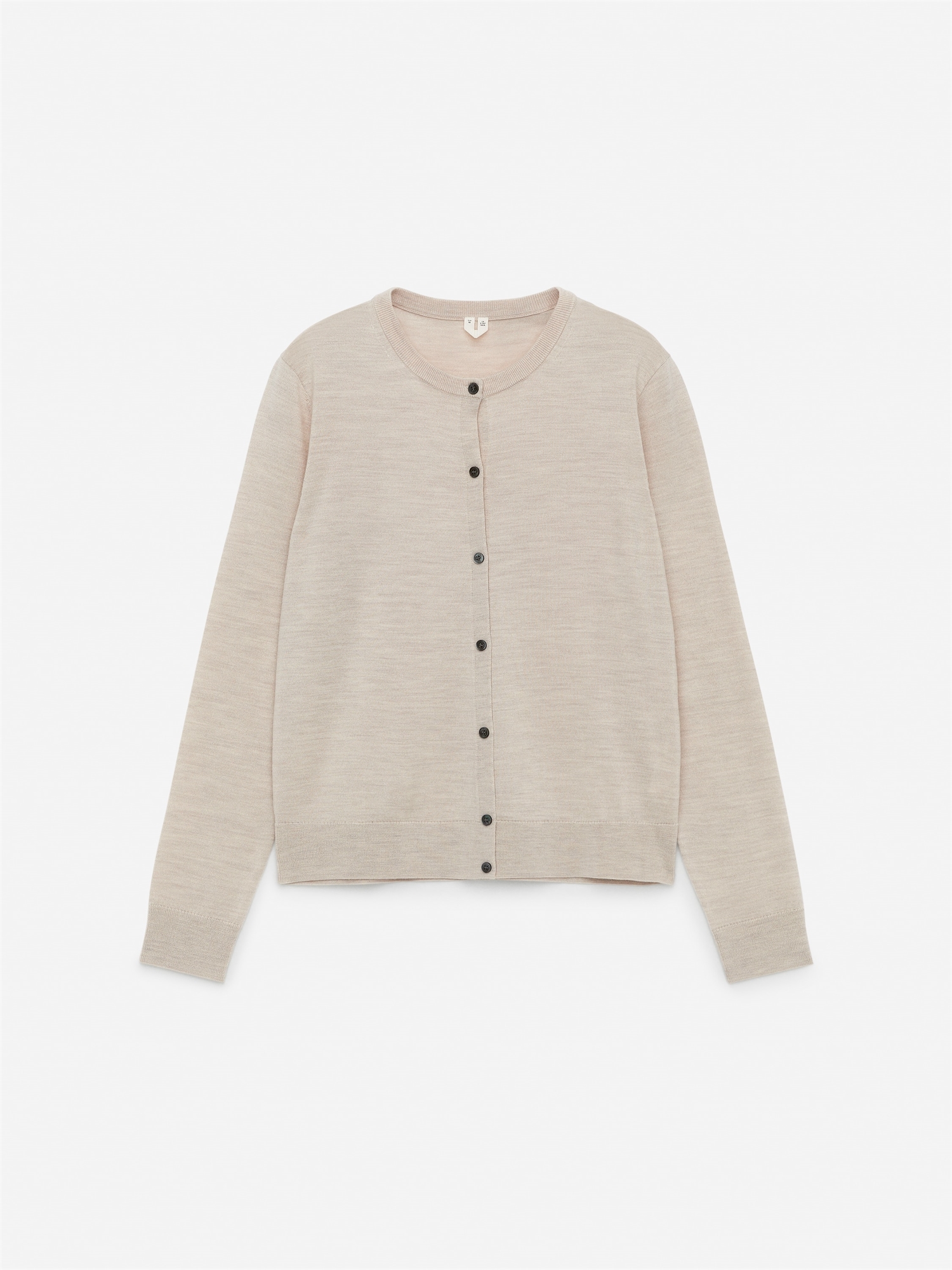 Кардиган вязаный из чистой мериносовой шерсти. С ребристой отделкой и перламутровыми пуговицами. Регулярный крой. Кардиган содержит 100% шерсти RWS (TE-00047206). Продукция, сертифицированная по стандарту Responsible Wool Standard (RWS), содержит шерстяное волокно с ферм, прошедших независимую сертификацию на соответствие требованиям по благополучию животных и землепользованию.