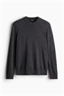 Джемпер из мягкой мериносовой шерсти тонкой вязки с круглым вырезом и длинными рукавами. Ребристая отделка по вырезу, манжетам и подолу. Зауженный крой, облегающий контуры тела и создающий приталенный силуэт.