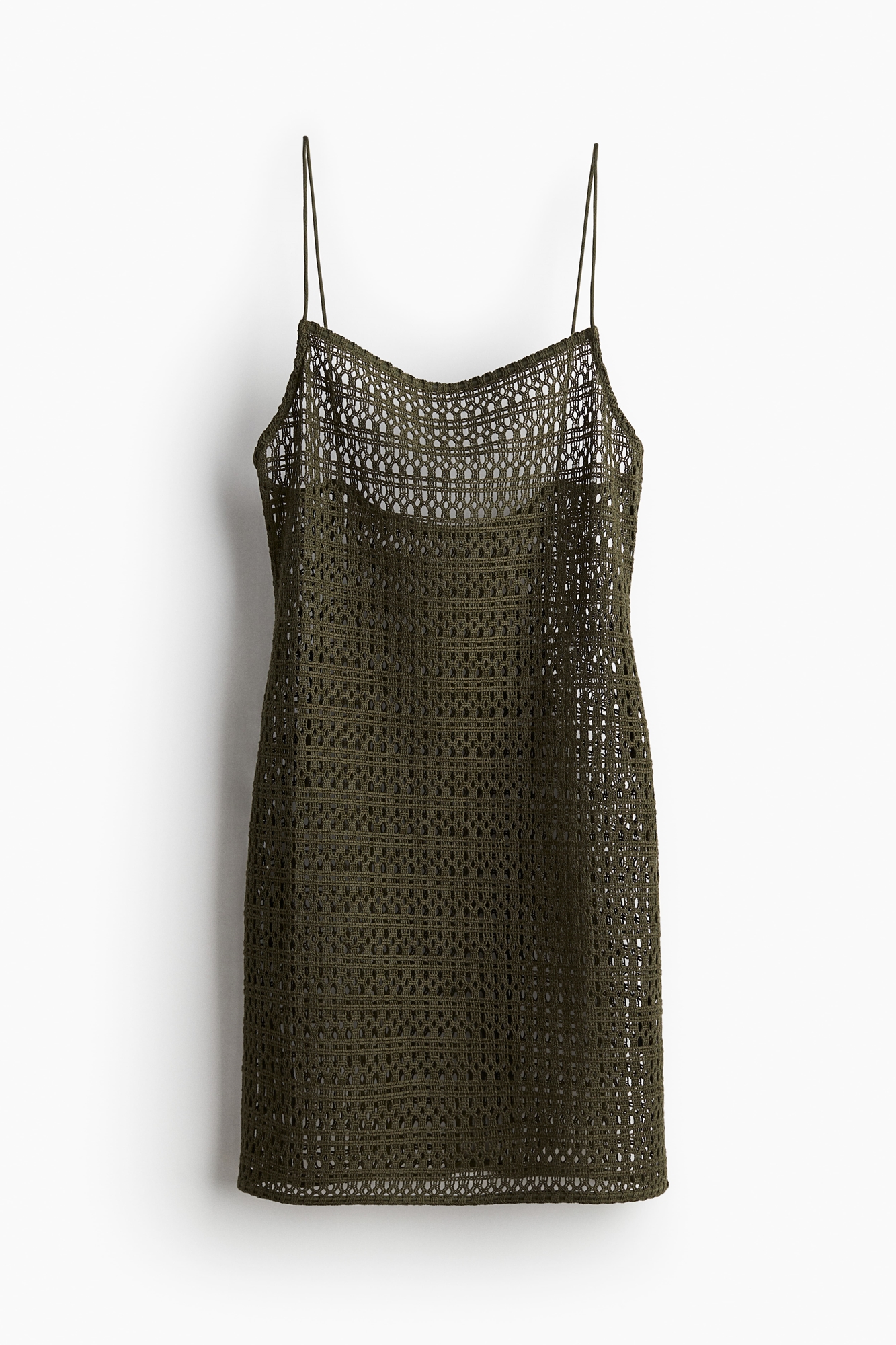 Короткое пляжное платье из хлопкового трикотажа с бретельками-спагетти и глубокой спиной. Без подкладки.