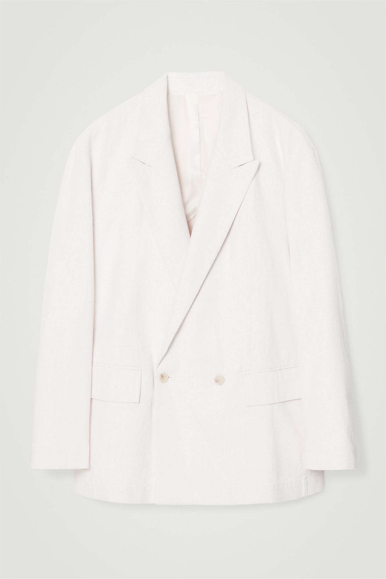 Этот классический двубортный блейзер свободного кроя сшит из белого денима. Вытачки на талии и разрез по центру спины намекают на традиционную технику пошива, а смесь неокрашенного органического хлопка и льна придает ему легкую структуру. Сочетайте блейзер с рубашкой контрастного цвета и подходящими брюками. Свободный крой Застежка на пуговицы Органический хлопок выращен из негенетически модифицированных семян без применения химических удобрений и пестицидов Верхний материал: 92% органического хлопка, 8% льна. Детали исключены/Машинная стирка Длина по спинке в размере ЕС 50 = 84 см/Модель носит размер ЕС 50
