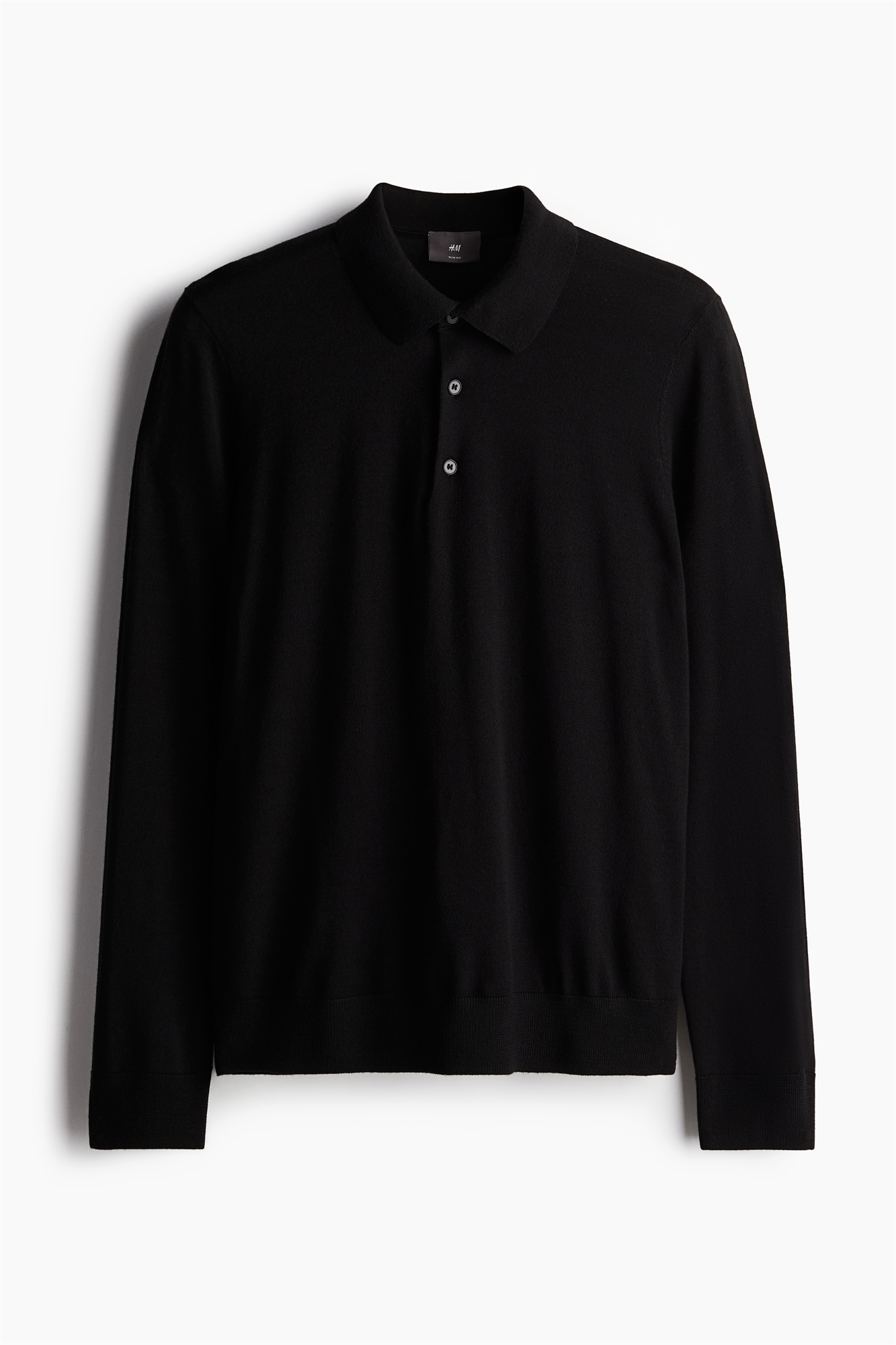 Рубашка-поло из мягкого трикотажа из шерсти мериноса с воротником, застежкой на пуговицы и длинными рукавами. Тонкая тесьма на манжетах и подоле. Зауженный крой, облегающий контуры тела и создающий приталенный силуэт.