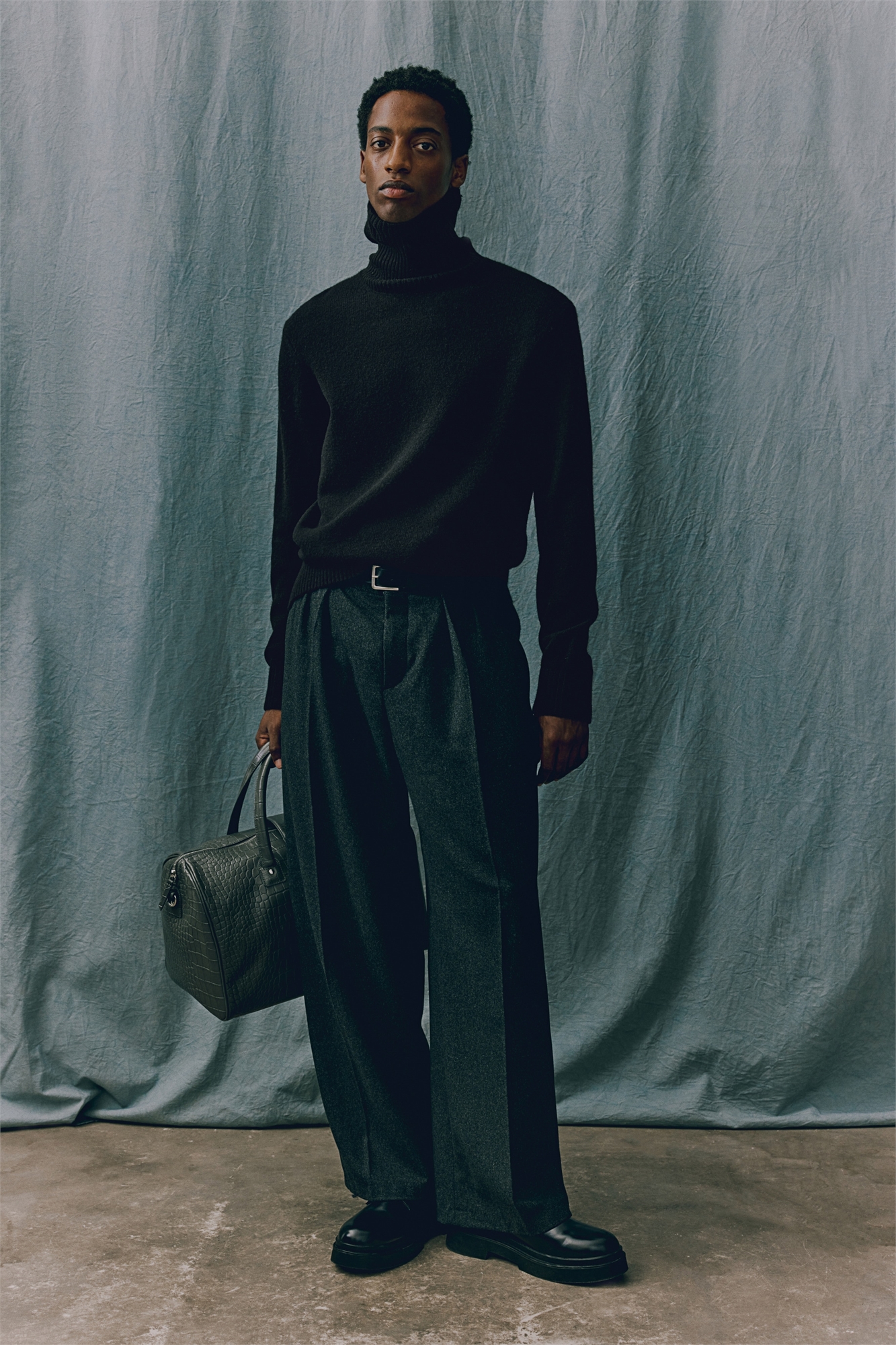 Джемпер из мягкого шерстяного трикотажа с ребристой горловиной-поло, длинными рукавами и окантовкой на манжетах и подоле. Регулярный крой для комфортной носки и классического силуэта.