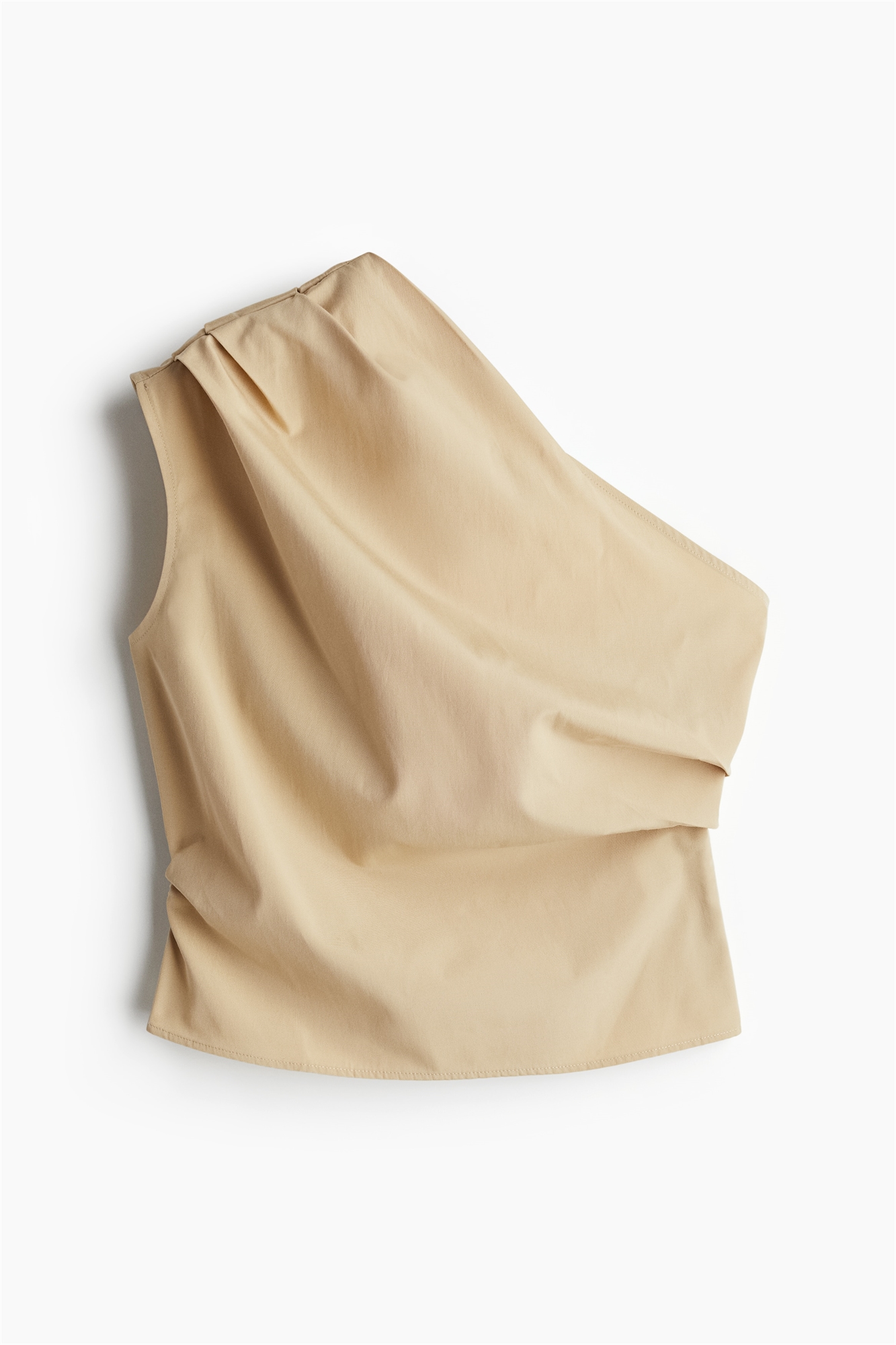 Короткий топ без рукавов на одно плечо из тканого материала с асимметричным вырезом и потайной застежкой-молнией с одной стороны. Облегающий силуэт со складками на плече и с одной стороны для создания эффекта драпировки.