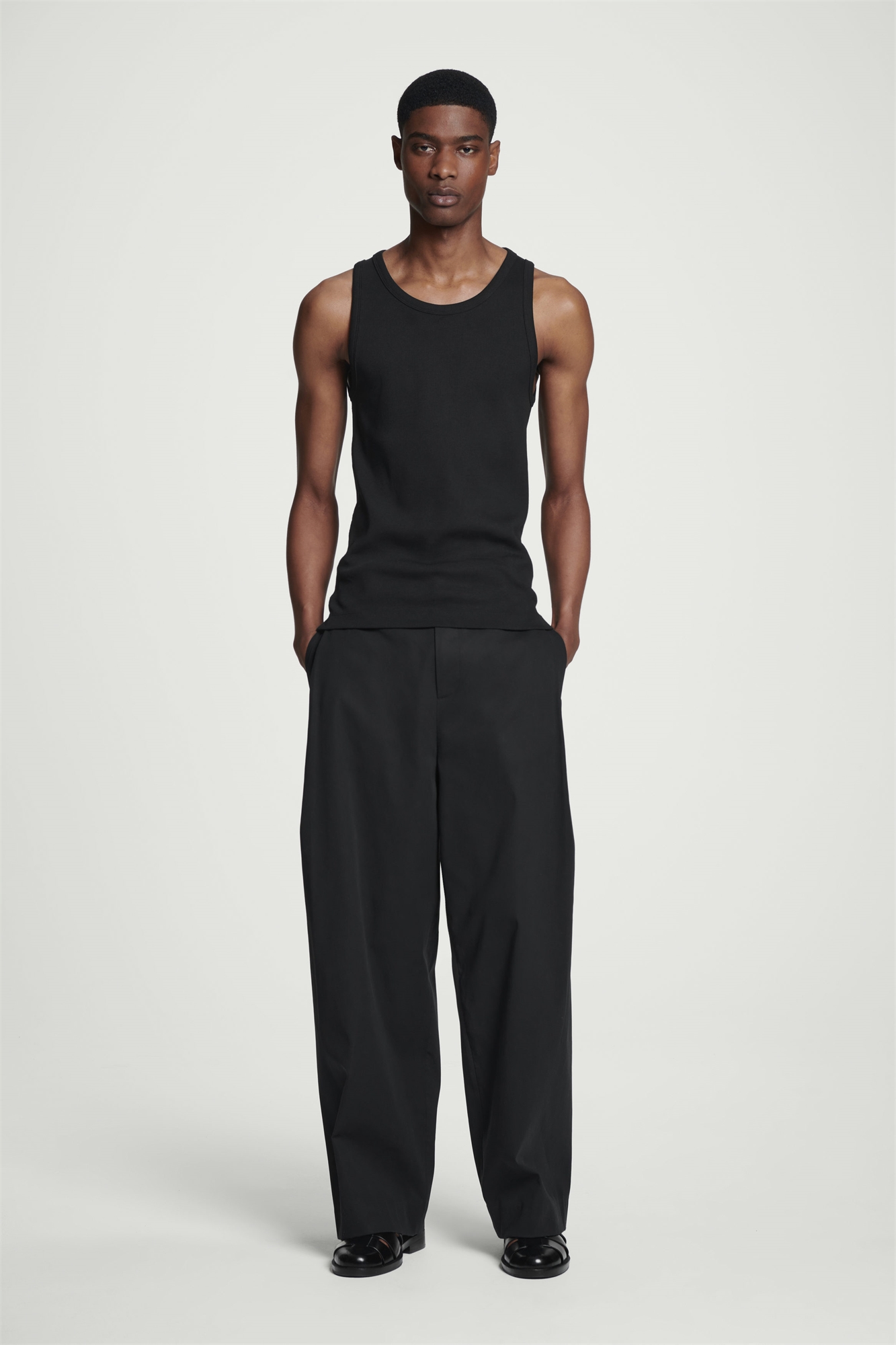 Эти черные брюки - беззаботная интерпретация элегантного пошива. Модель из хлопка имеет широкие штанины, которые подчеркиваются характерными складками по бокам. Носите с рубашкой с отложным воротником и сандалиями. Свободный крой Застежка на крючок и планку Накладные карманы сбоку и сзади Внешняя ткань и подкладка карманов: 100% хлопок. Детали исключены/Машинная стирка Внутренняя длина ноги в размере ЕС 48 = 77,1 см/Модель носит размер ЕС 48