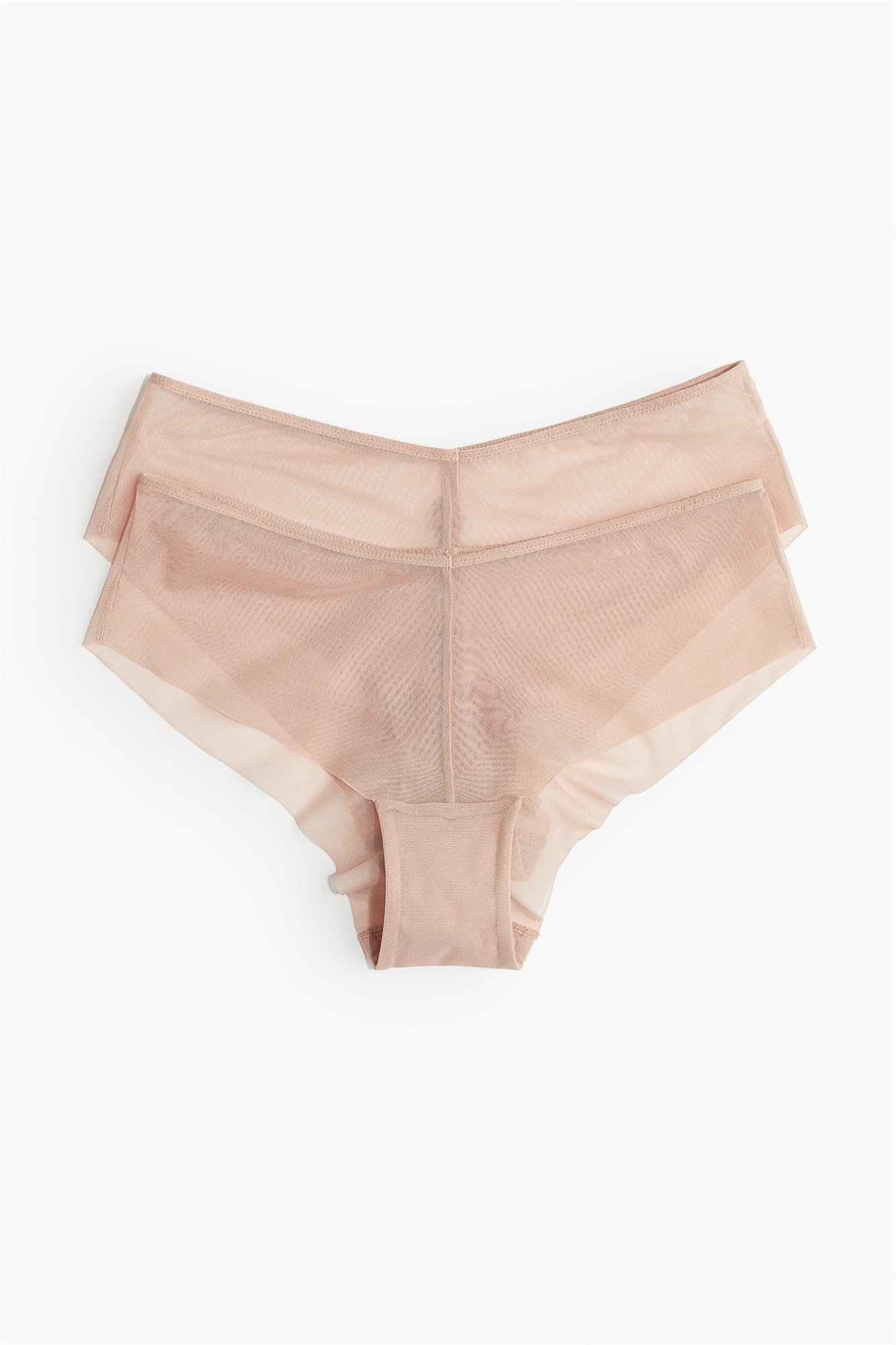 Трусы из сетки с отделкой по краям для бесшовного, комфортного ощущения на коже и минимальной видимости под одеждой. Заниженная, V-образная талия, ластовица на подкладке и средняя степень охвата сзади.
