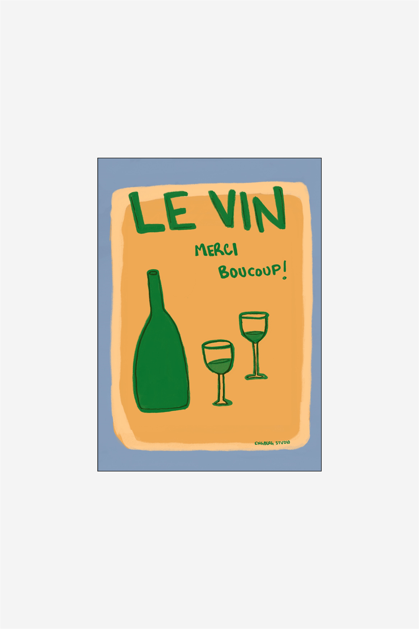 "Идея этого принта возникла после того, как мы с мужем побывали в Ницце и на протяжении всей нашей поездки говорили "Merci, Boucoup!" - кто не любит немного вина и вежливости?" - Студия Engberg
