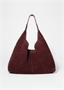 Сумка-торба из гладкой замши с матовой отделкой и декоративным швом посередине. Эта модель оснащена магнитной застежкой и внутренним карманом. Ширина: 42 см / 16,5” Высота по центру: 30 см / 11,8”