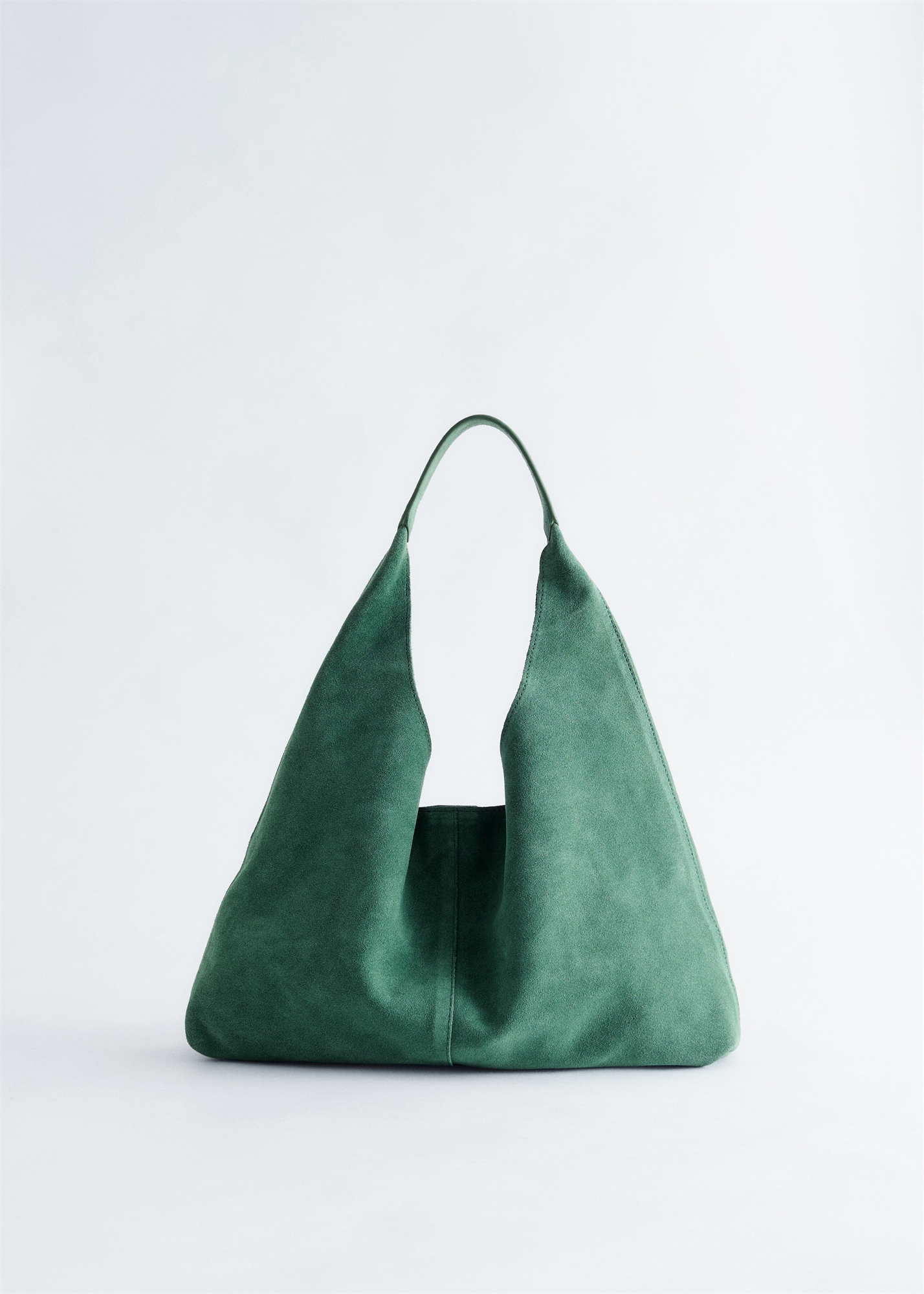 Сумка-торба из гладкой замши с матовой отделкой и декоративным швом посередине. Эта модель оснащена магнитной застежкой и внутренним карманом. Размеры: 37 см x 34 см 14,6" x 13,4"