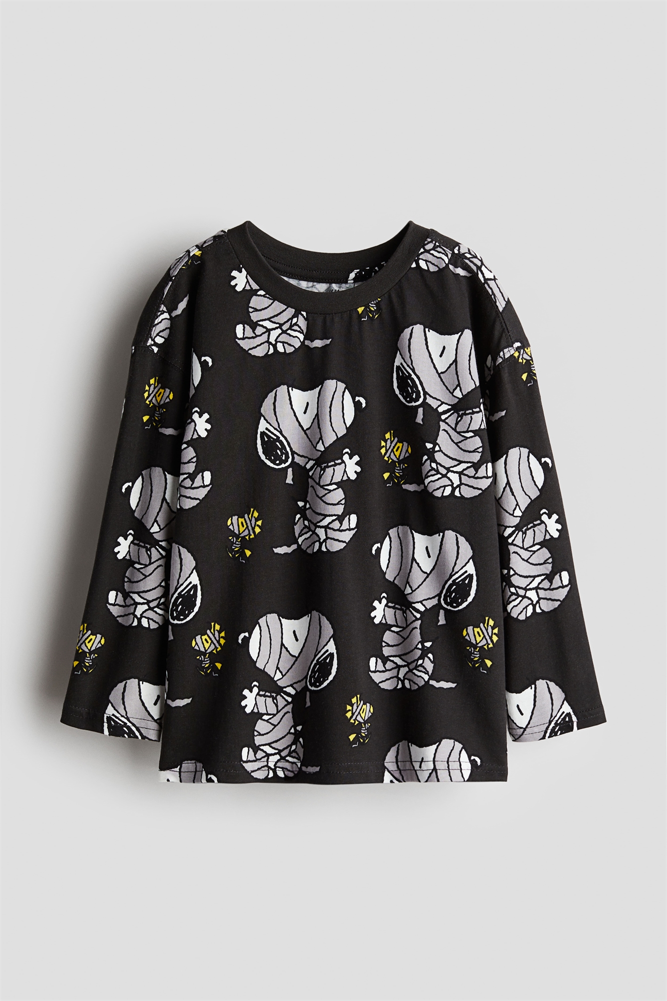 Футболка с длинными рукавами из мягкого хлопкового джерси с принтом, круглым вырезом и спущенными плечами.