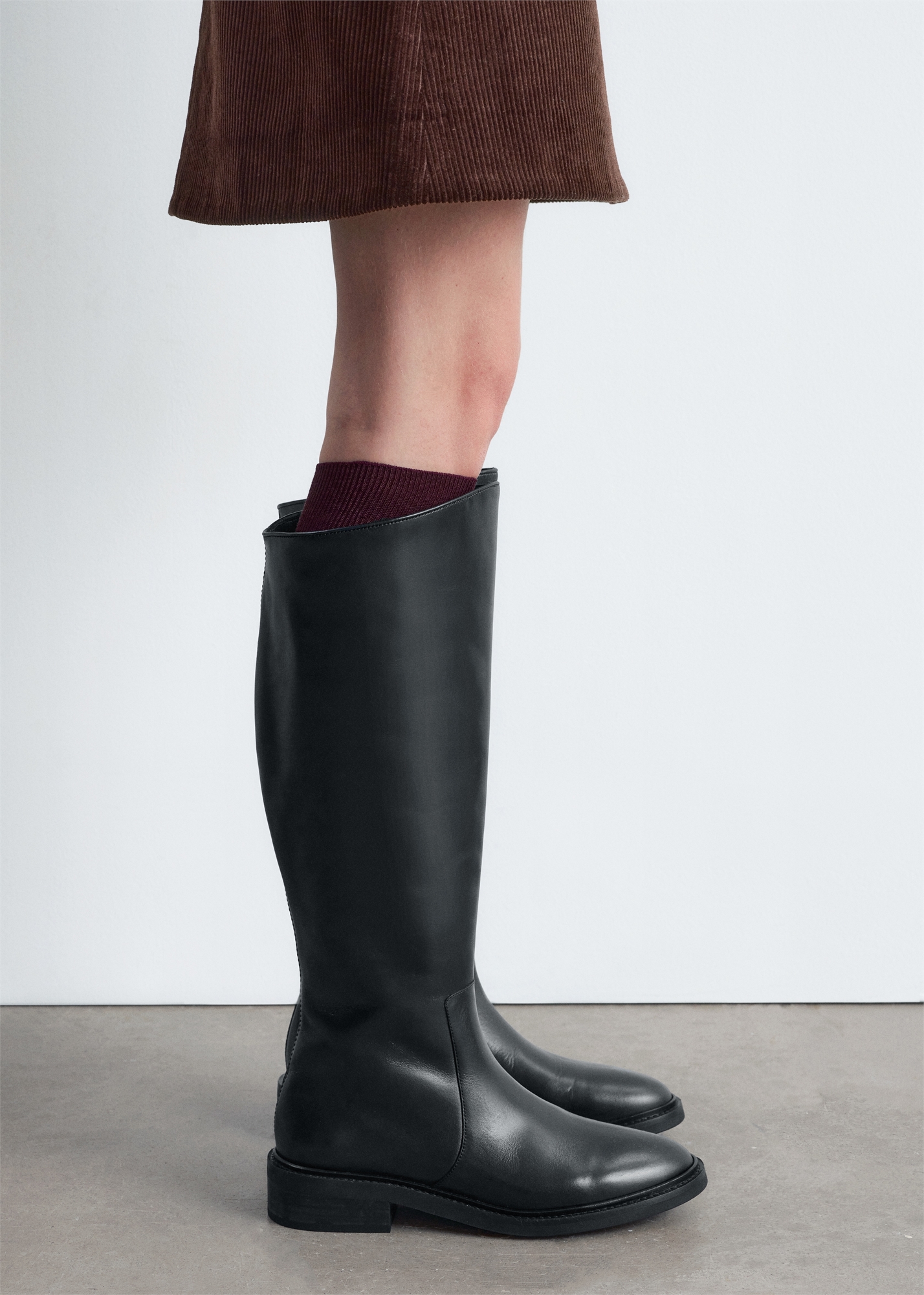 Эти сапоги вдохновлены классическим стилем верховой езды. Они изготовлены из эластичной кожи в Португалии. 30-миллиметровый каблук обеспечивает тонкий подъем и при этом достаточно удобен для ношения в течение всего дня. Сапоги на резиновой подошве и удобной потайной застежкой-молнией. Каблук: 3 см / 1,2" Голенище: 38 см / 15"