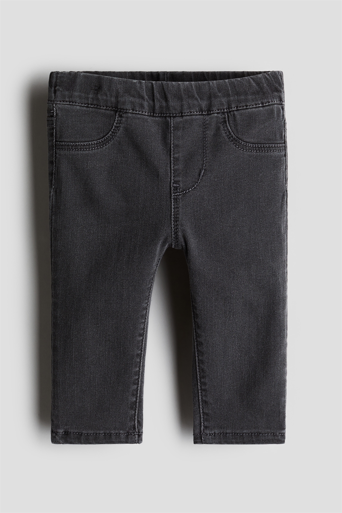 Джеггинсы из мягкой ткани с регулируемой резинкой на талии, фальшивой ширинкой и фальшивыми передними карманами.