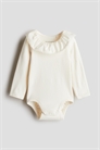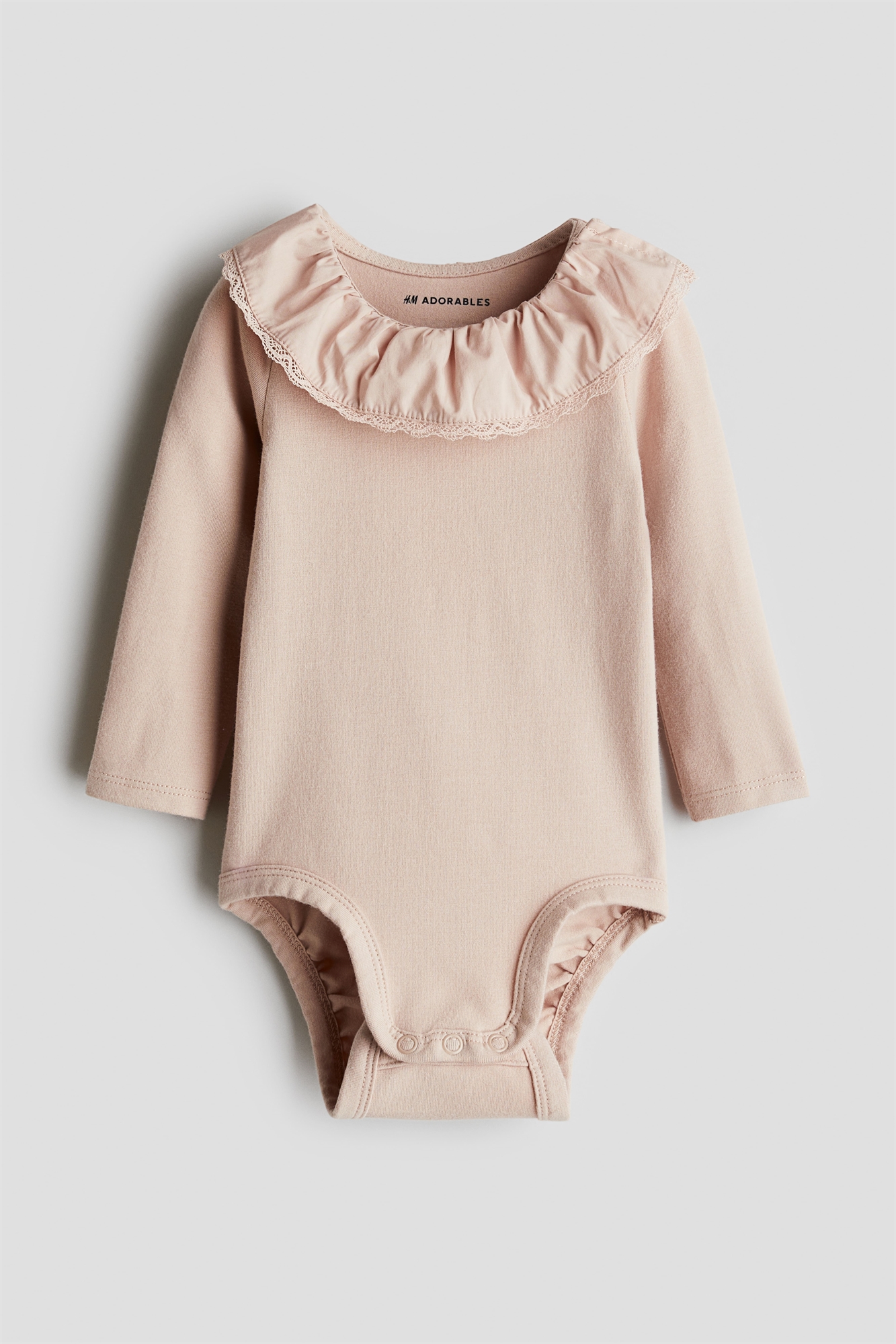 H&M Adorables. Боди с длинными рукавами из мягкого джерси, изготовленного из высококачественного хлопка. Боди-комбинезон имеет закругленный тканый воротник с нежной кружевной отделкой. Пуговицы на одном плече и два ряда пуговиц внизу для регулировки длины. Наш хлопок имеет высокий показатель GSM, что означает более плотное и прочное качество без ущерба для комфорта. Коллекция H&M Adorables - это подборка качественных вещей с высоким уровнем комфорта, которые не подвластны времени.
