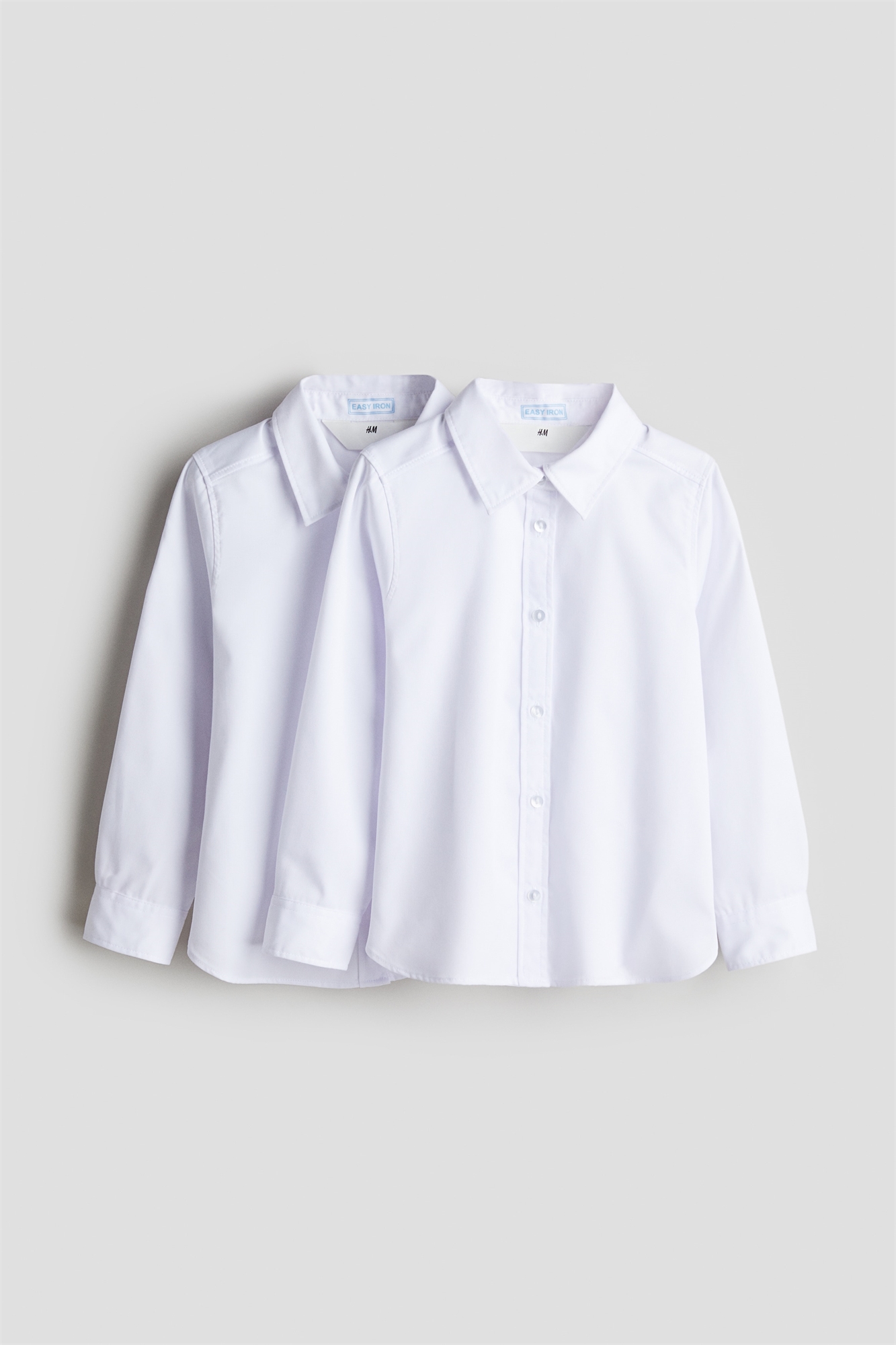 Легко гладящиеся школьные рубашки из хлопковой саржи. Воротник, застежка на пуговицы спереди, ярмо сзади и длинные рукава с широкими манжетами на пуговицах. Аккуратный закругленный подол.