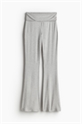 Брюки из мягкого вискозного джерси с широким отложным поясом и зауженными ногами с расклешенными краями.