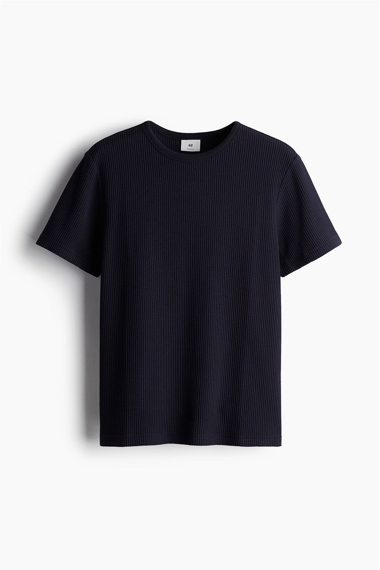 Футболка из вафельного хлопкового джерси с круглым вырезом в рубчик и прямым покроем. Регулярный крой для комфортной носки и классического силуэта.