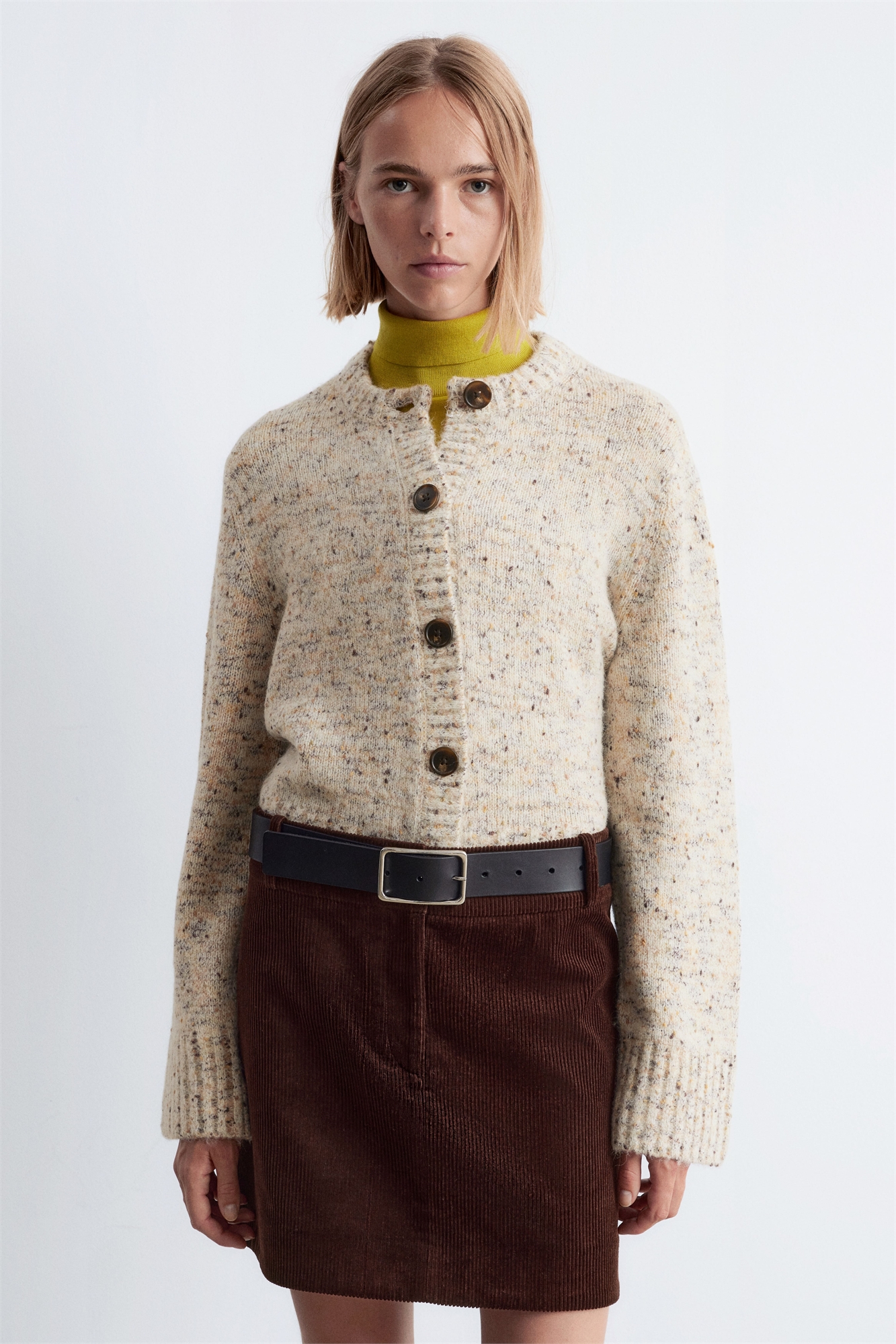 Кардиган вязаный из смеси шерсти и альпаки. Застегивается на пять пуговиц. • Ребристая горловина, манжеты и подол • 40% шерсти RWS TE-00047206 • 30% альпаки RAS TE-00047206 • Длина кардигана: 48 см / 18,9" (размер S)