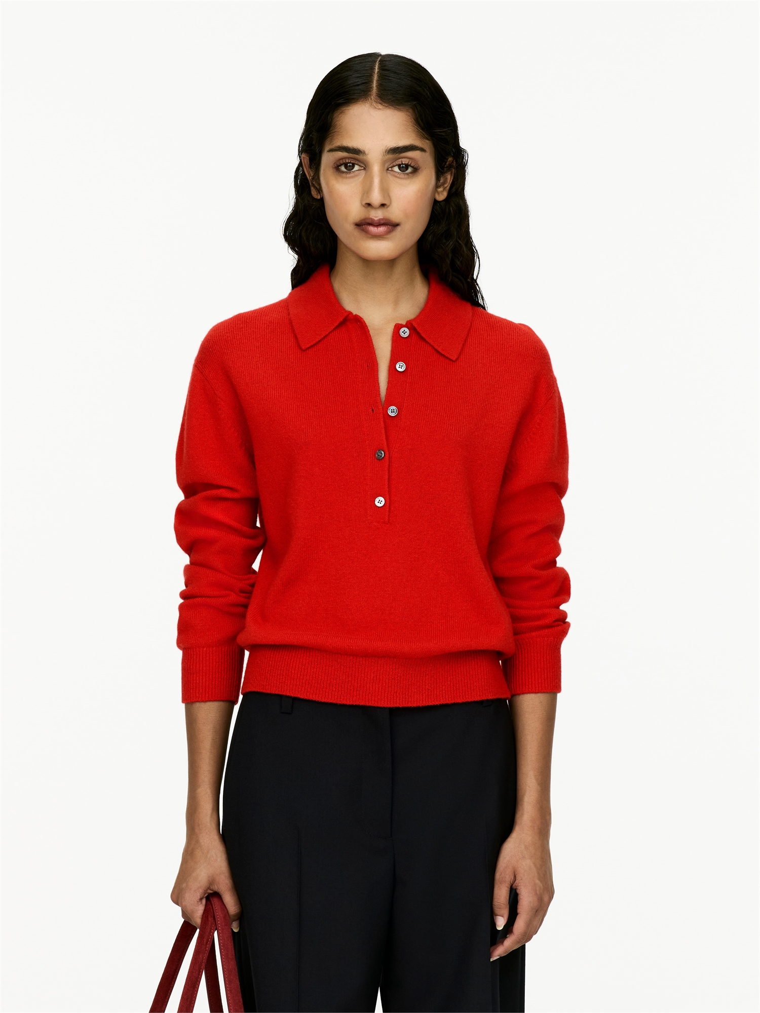 Вязаный джемпер-поло из шерсти. Классический воротник и застежка на пять пуговиц. Ребро по подолу и манжетам. Свободный крой. Джемпер содержит 100% шерсти RWS (TE-00047206). Продукция, сертифицированная по стандарту ответственной шерсти (RWS), содержит шерстяное волокно с ферм, прошедших независимую сертификацию на соответствие требованиям по благополучию животных и землепользованию.