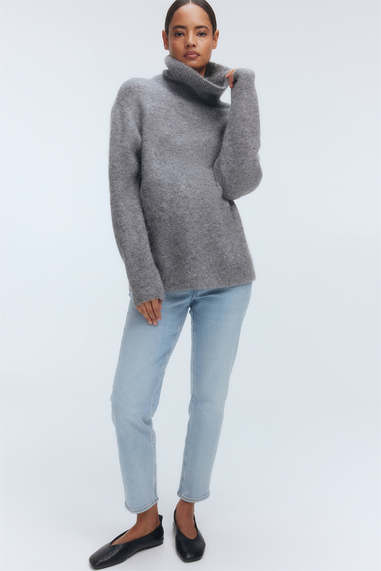 Джинсы длиной до щиколотки с 5 карманами из слегка тянущегося денима с фальшивой ширинкой. Зауженные ноги и широкая панель из джерси на талии для лучшей посадки на животе.