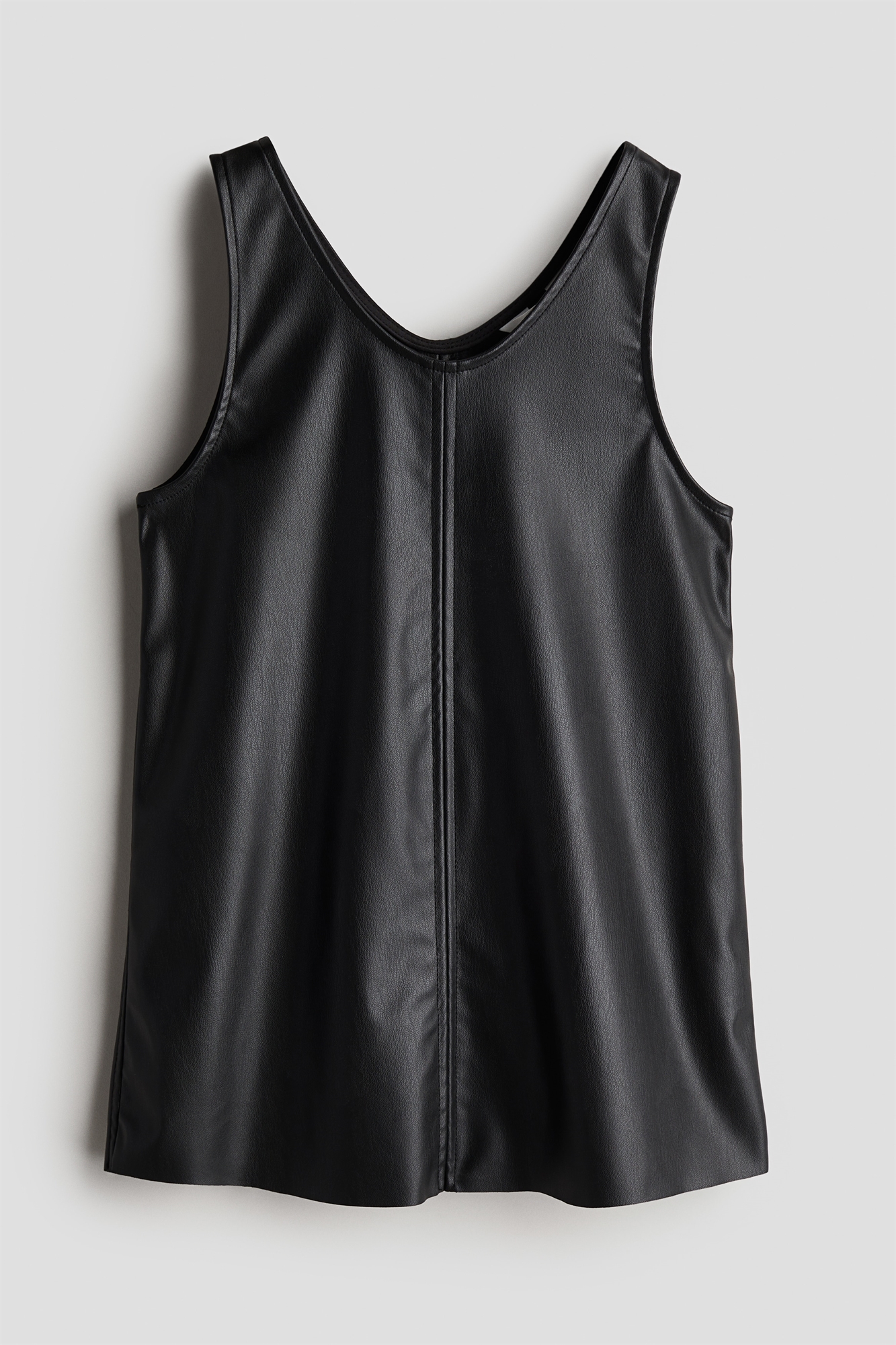 Свободное платье А-линии из ткани с покрытием, с широкими бретелями и видимыми швами. Без подкладки.