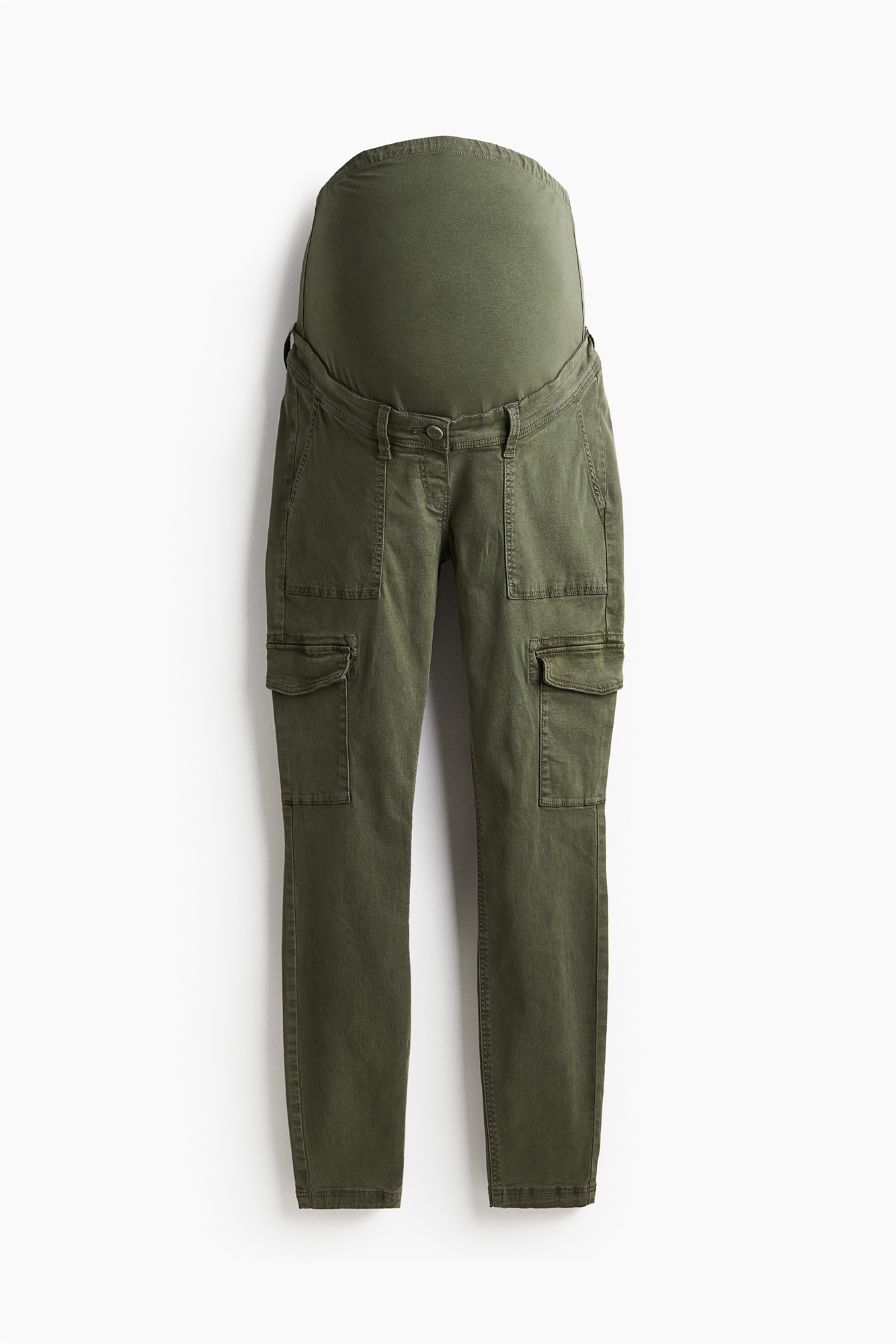 Зауженные брюки-карго из саржи, выполненной из смеси лиоцелла и хлопка. Фальшивая ширинка с пуговицей и широкая трикотажная панель на талии для лучшей посадки на животе. Накладные карманы спереди, фальшивые карманы с клапанами сзади и накладные карманы на ногах.