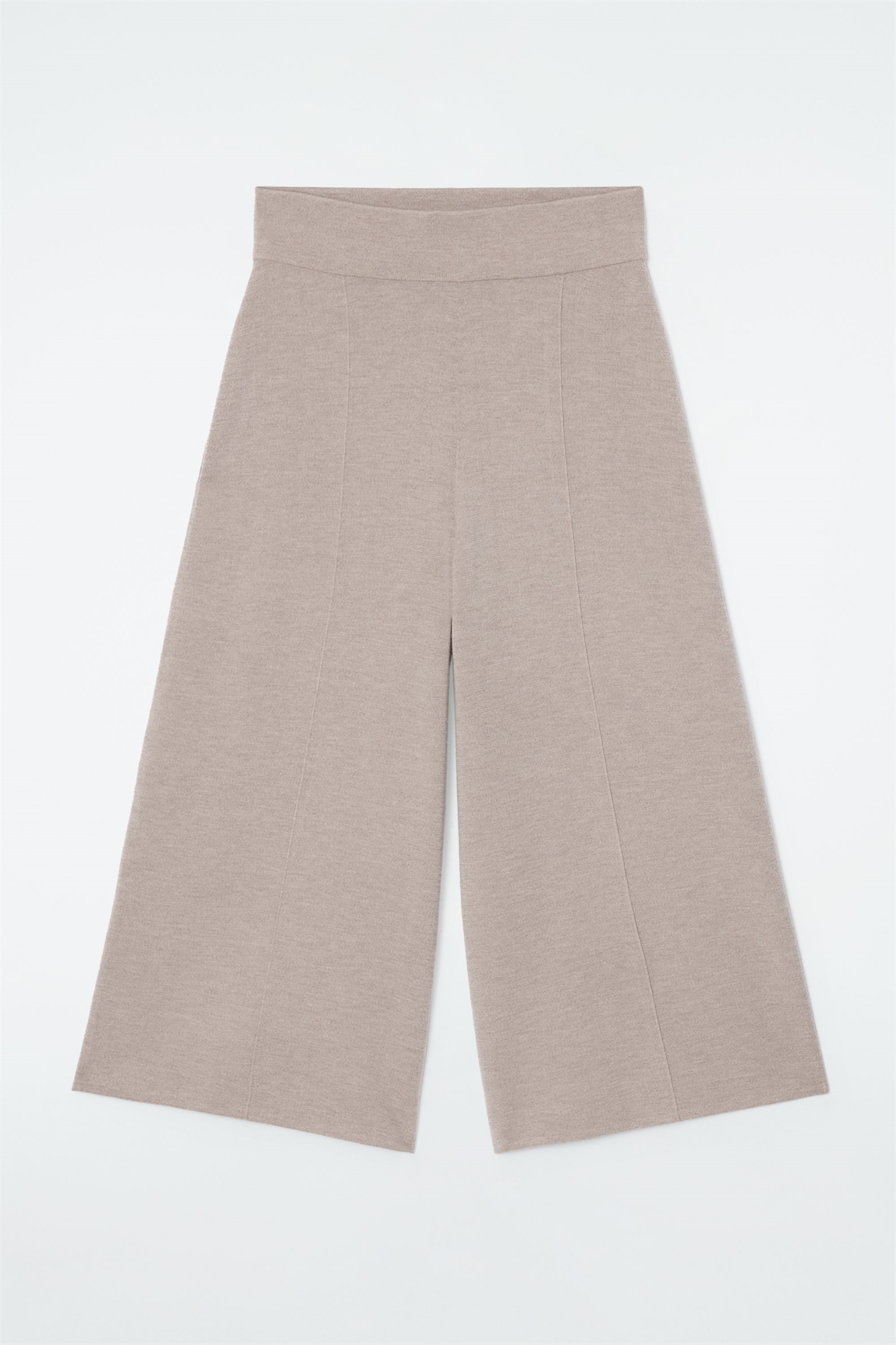 Эти современные кюлоты из высококачественной мериносовой шерсти удобны и изысканны. Они выполнены в простом бежевом цвете, имеют эластичный пояс и укороченные широкие ноги. Дополните образ подходящим джемпером. Этот товар сертифицирован в соответствии со стандартом ответственной шерсти TE-00047206 (RWS) и содержит шерстяные волокна с ферм, сертифицированных в соответствии с правилами благополучия животных и сельскохозяйственными нормами Внешний материал: 100% мериносовая шерсть. Пояс на талии: 87 % переработанного полиэстера, 13 % эластана. Детали исключены/Машинная стирка Внутренняя длина ноги в размере S = 50 см/Модель носит размер S