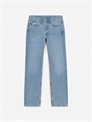 Модель SNOW сшита из неэластичного денима и имеет среднюю талию, зауженный крой и прямые ноги. Застежка на пуговицы. Внутренняя длина штанины 79 см (размер 28).