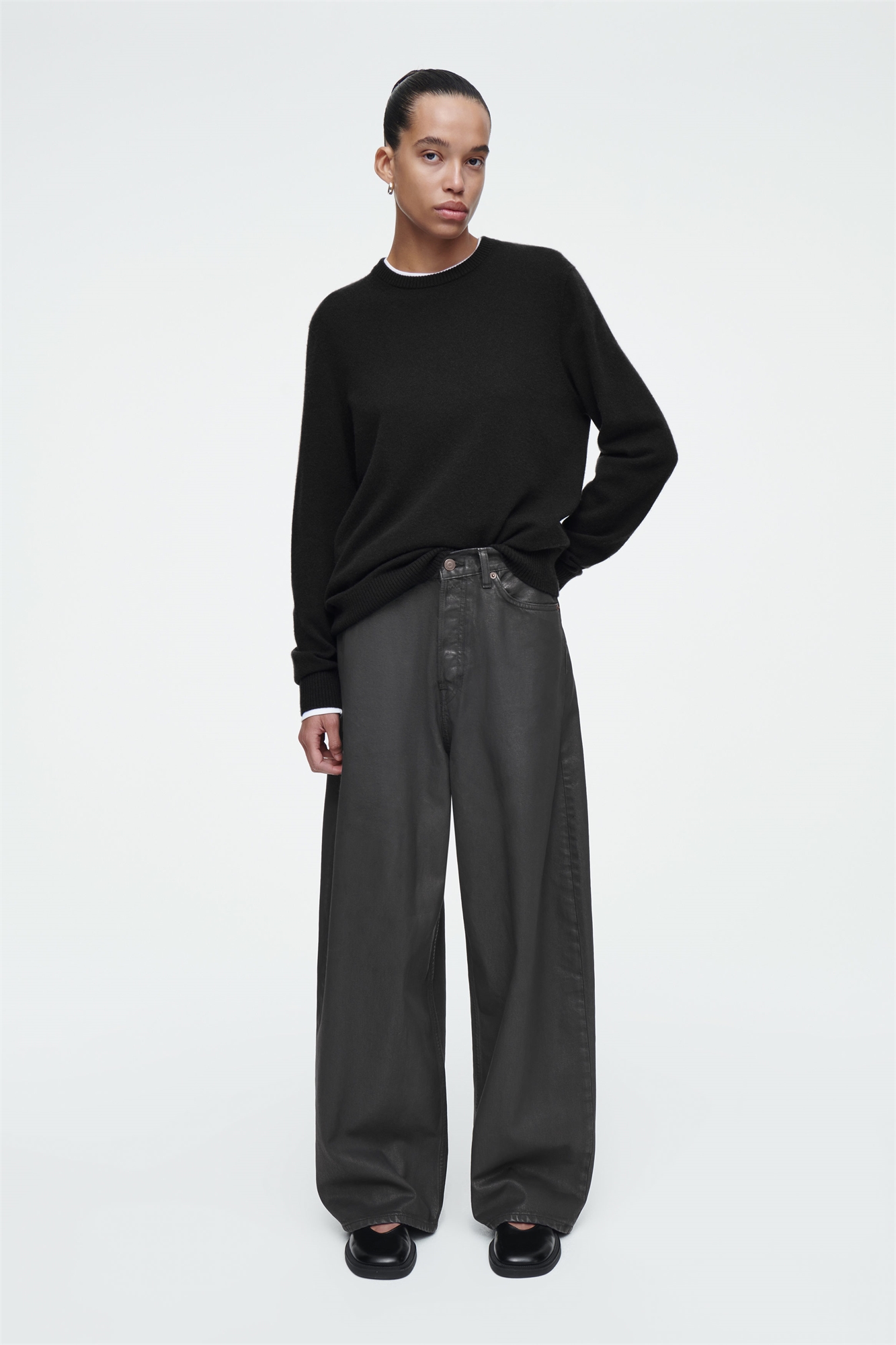 Джинсы Coast - один из самых актуальных фасонов в нашей коллекции денима - имеют широкие штанины и удлиненные подолы, которые опускаются поверх обуви. Эта черная пара изготовлена из денима из органического и переработанного хлопка с покрытием, придающим тонкий блеск, и оснащена промышленными пряжками, регулирующими посадку на талии. Расслабленный крой, низкий подъем, широкие штанины, удлиненная длина Застежка на пуговицах и молнии, 12 унций. Органический хлопок выращен из негенетически модифицированных семян без использования химических удобрений и пестицидов Состав: 80% органический хлопок, 20% переработанный хлопок. Без учета отделки / Машинная стирка Внутренняя длина штанины размера 27 составляет 72,5 см / Модель носит размер 27